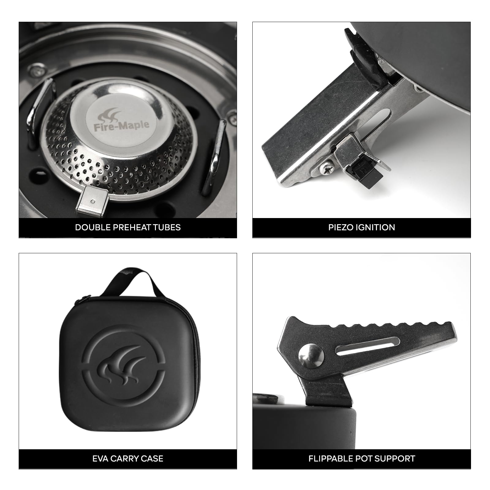 Fire-Maple Saturn X Camping Stove - High-Power Outdoor Cooking Stove with Dual Preheating Tubes, Wind-Resistant, Adjustable Height and Foldable Supports for Camping