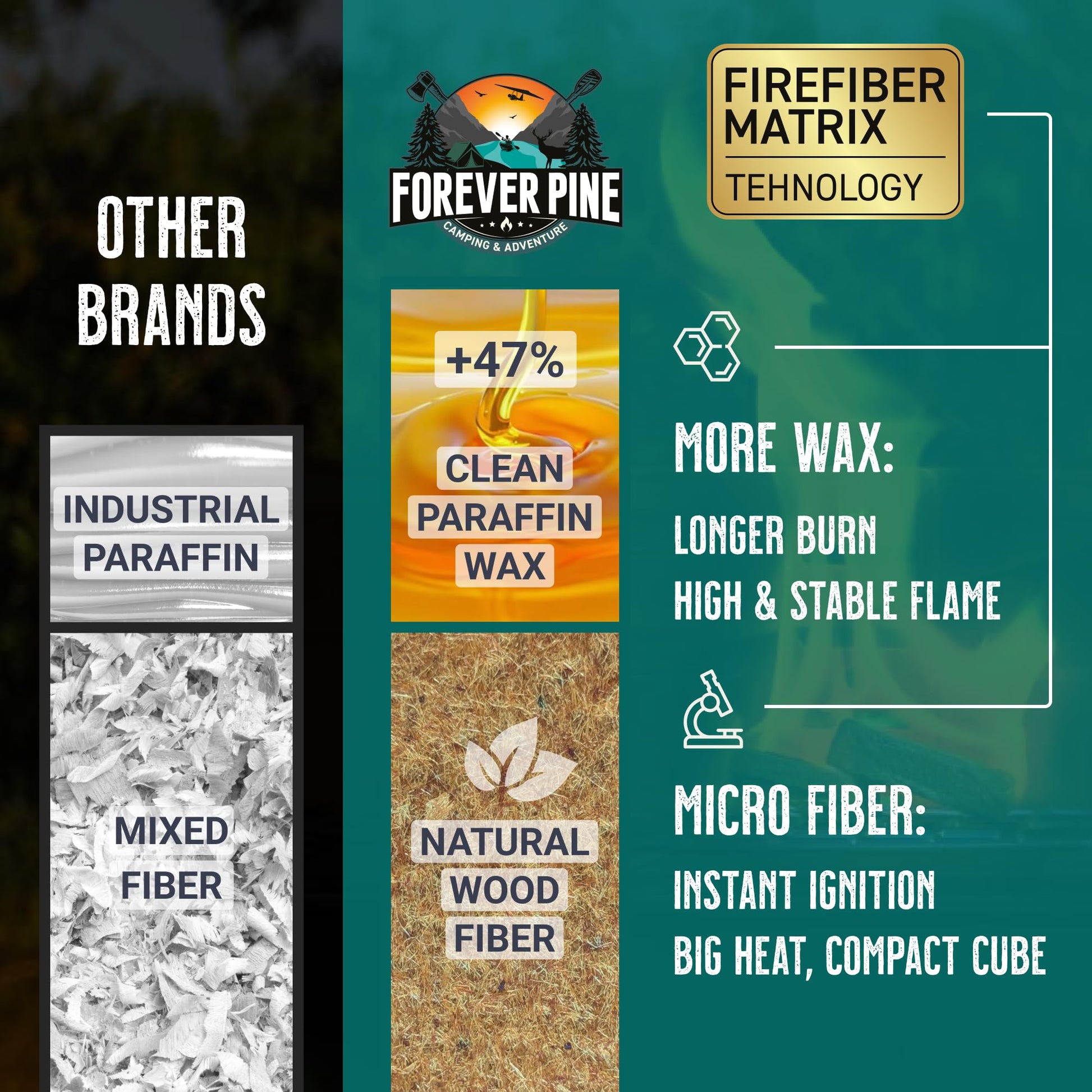 - FIREFIBER MATRIX TECHNOLOGY – Exclusive wax blend and microfiber - cubes catch a fire in 1-2 sec and burn with a high flam. Optimal for fireplace, fire pits, camping, cooking, and outdoor grilling.