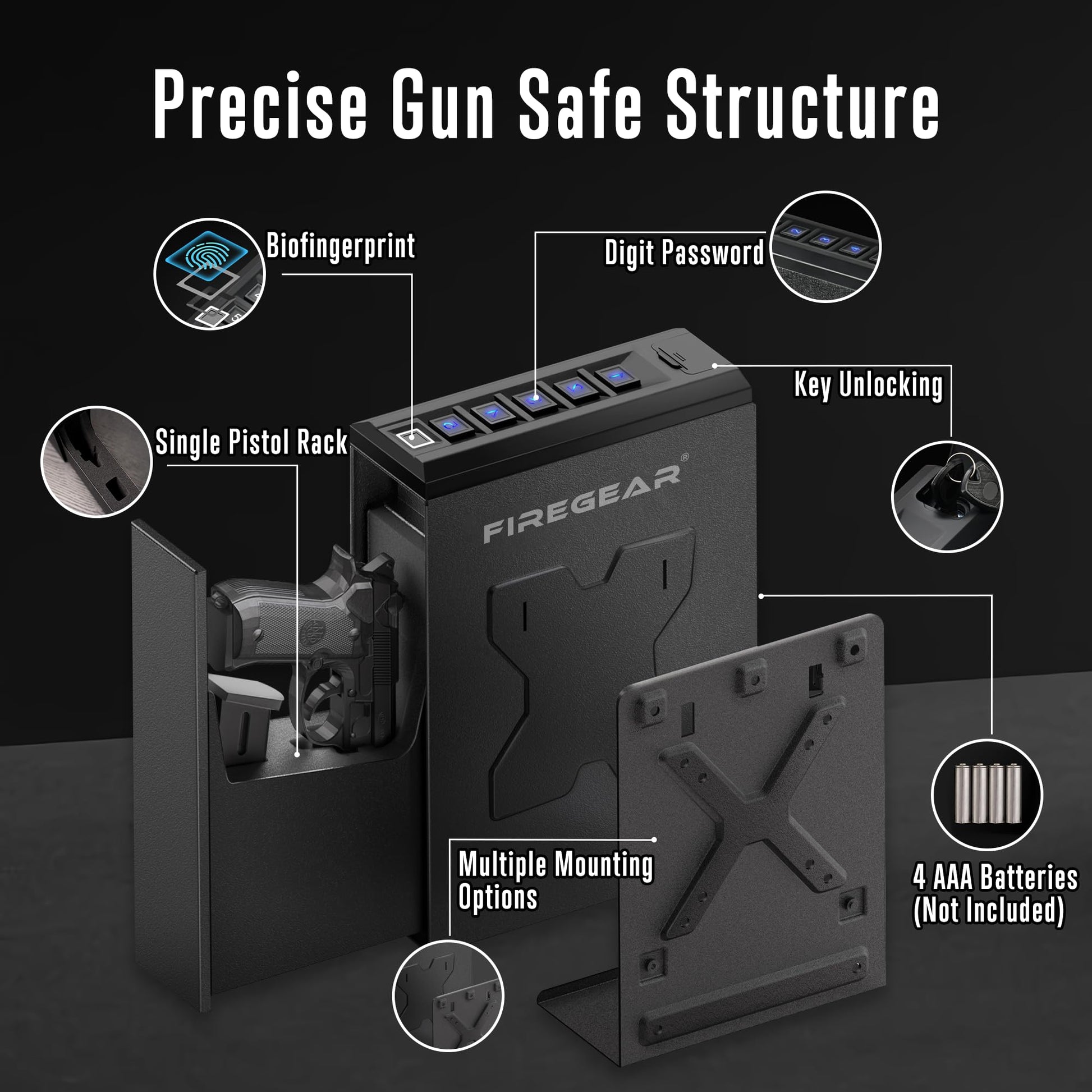 - PACKAGE INCLUDE: One upgraded biometric gun safe designed for quick access, storing up to 20 fingerprints. Ideal for secure bedside storage of handguns and pistols, ensuring peace of mind at home.