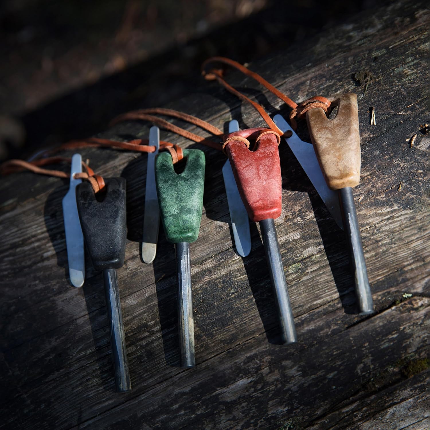 - The reindeer leather cord tied in the handle gives extra-support and keeps the striker on hand. The ferrocerium rod lasts in use for years.