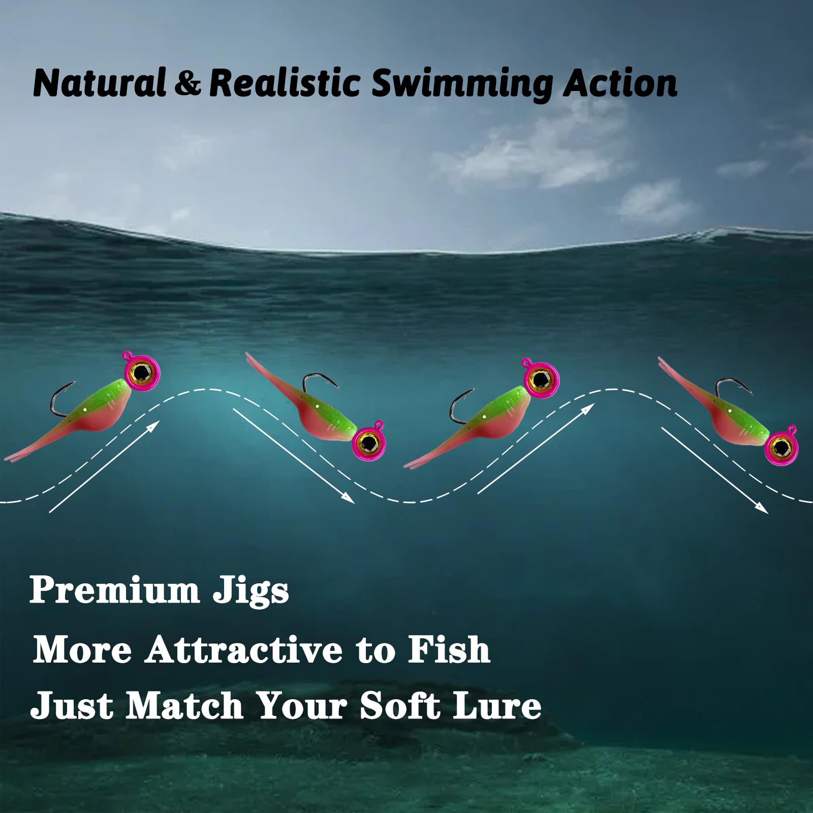 - 【Easy to Apply】They're easy to use for beginner and anglers of all levels of experience,just match jigs with your plastic lures. Great for crappie,trout,sunfish,and white bass.