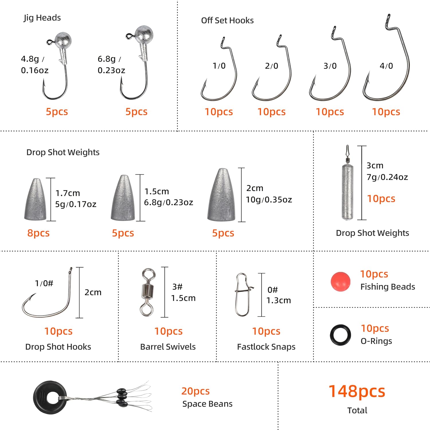 - Huge Variety: The fishing tackle comes in sensible blend, includes off-set hooks, drop shot hooks, bullet weights, drop shot weights, jig heads, barrel swivels, fastlock snaps, fishing beads and space beans, suitable for all sorts of fishing conditions (About 0.15USD for each piece)