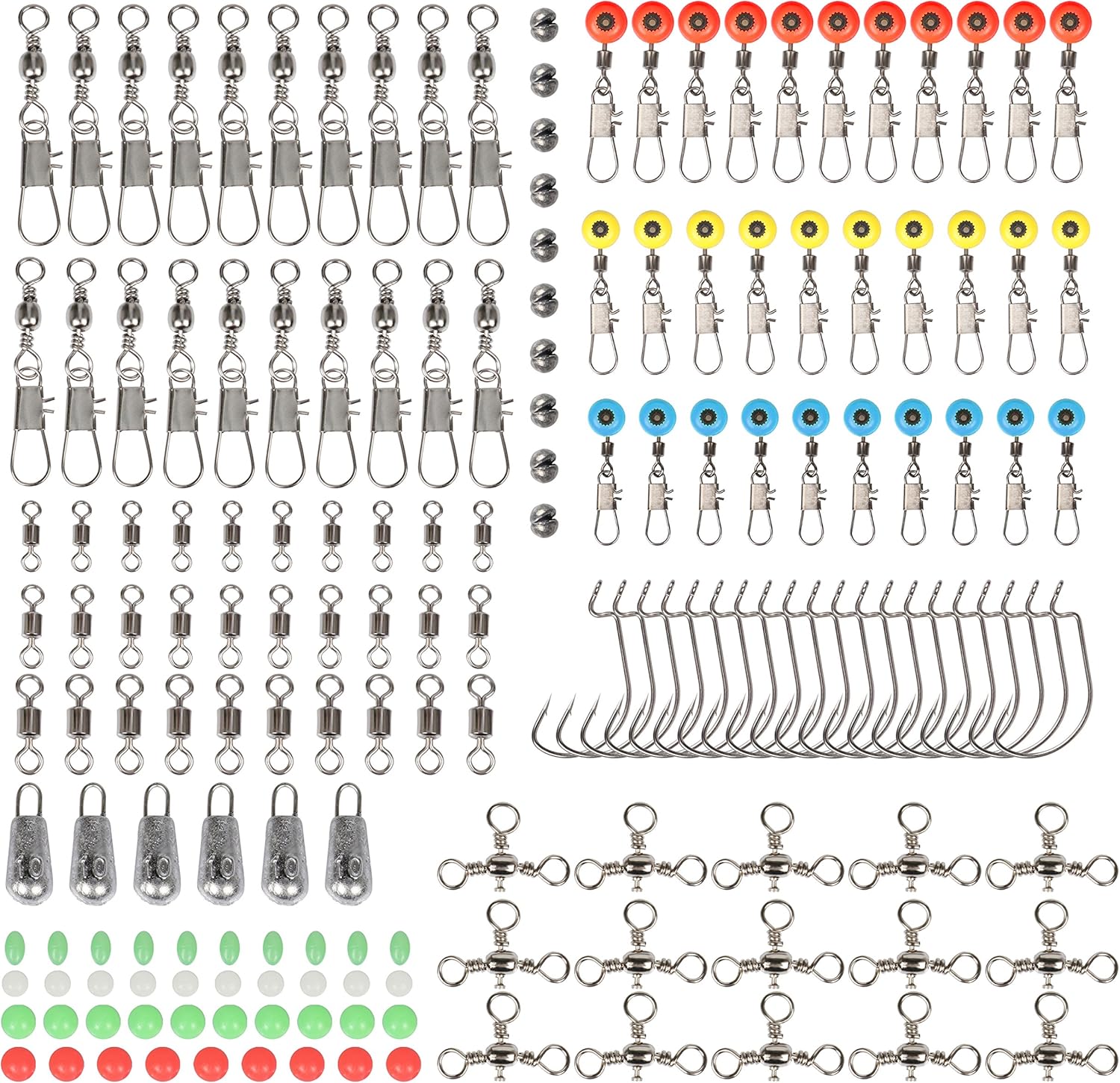 Fishing Accessories Kit, Fishing Set with Tackle Box, Fishing Hooks, Weights, Jig Heads, O-Rings, Barrel Swivels, Fastlock Snaps, Fishing Beads, Space Beans - Freshwater & Saltwater Fishing