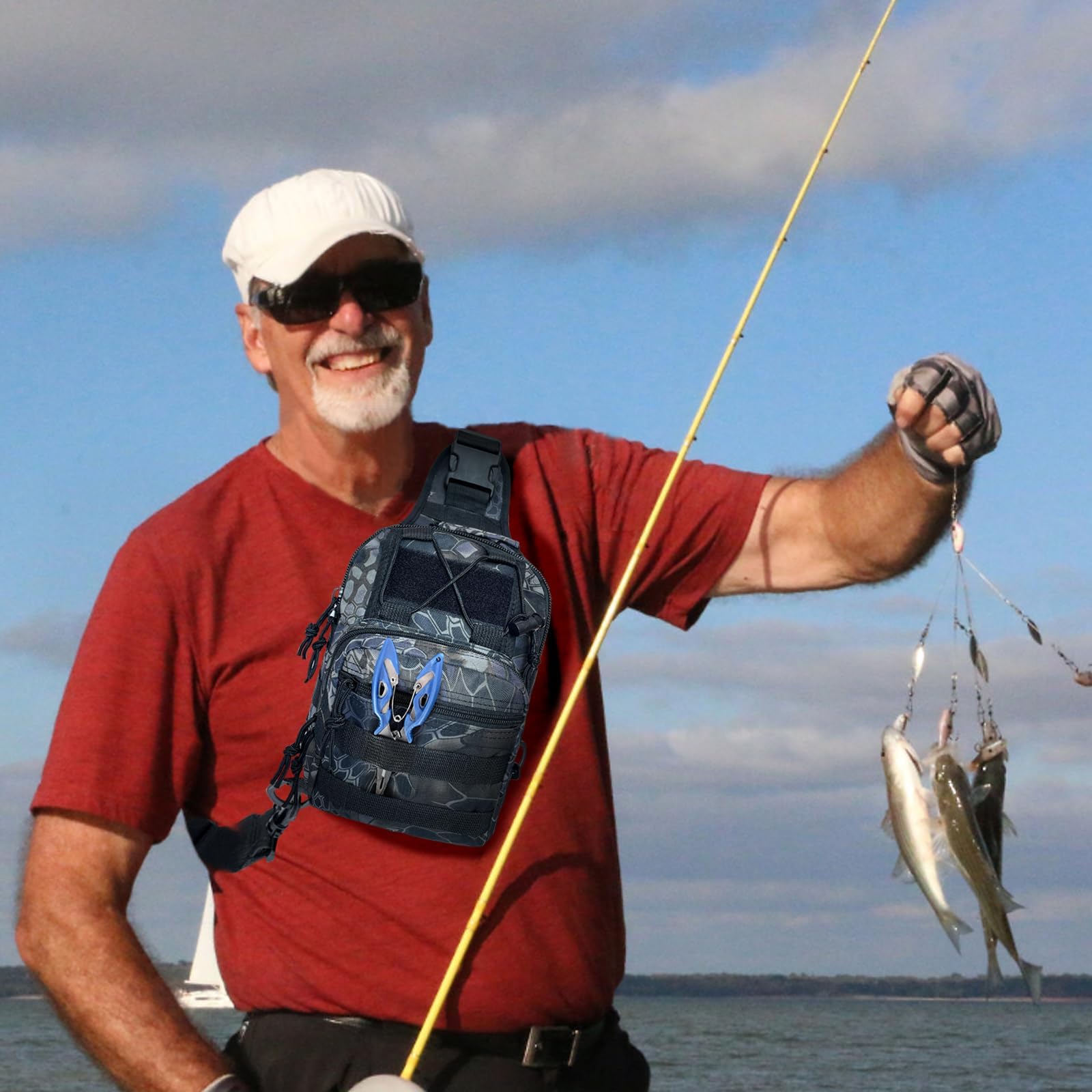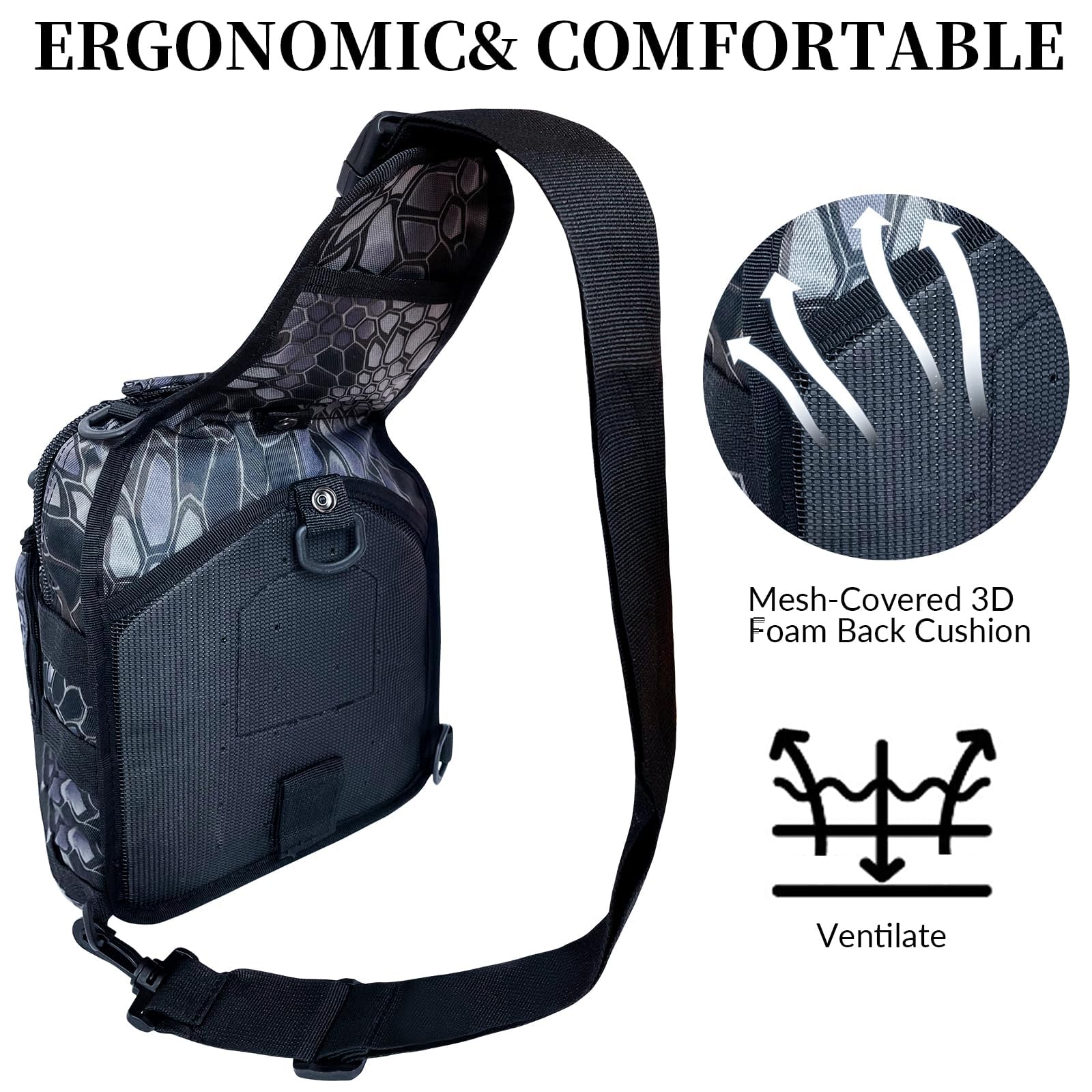 - Comfortable Design: Fishing sling backpack smooth zippers for easy pulling, the lengthened and widened shoulder pad design can effectively relieve shoulder fatigue, making it more comfortable