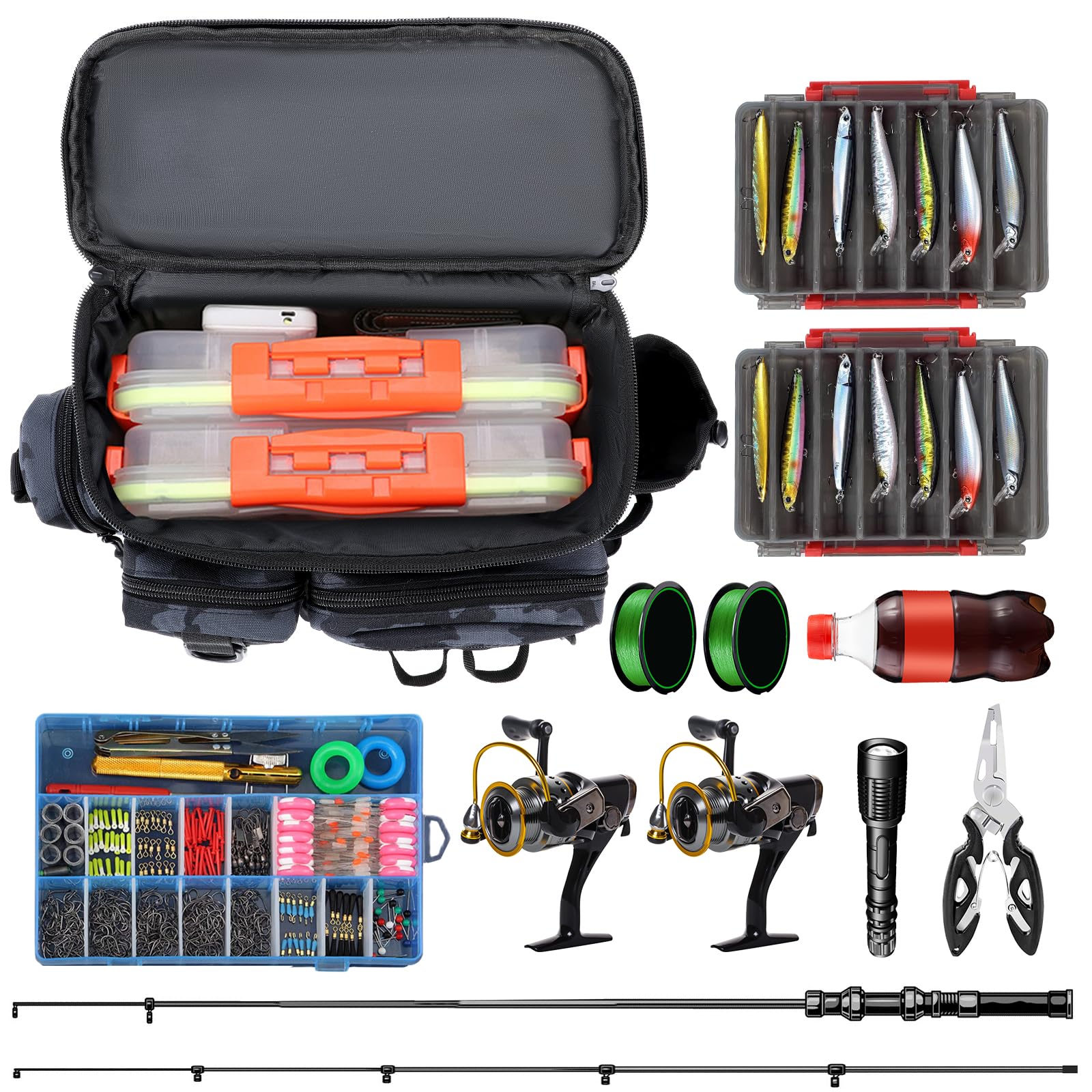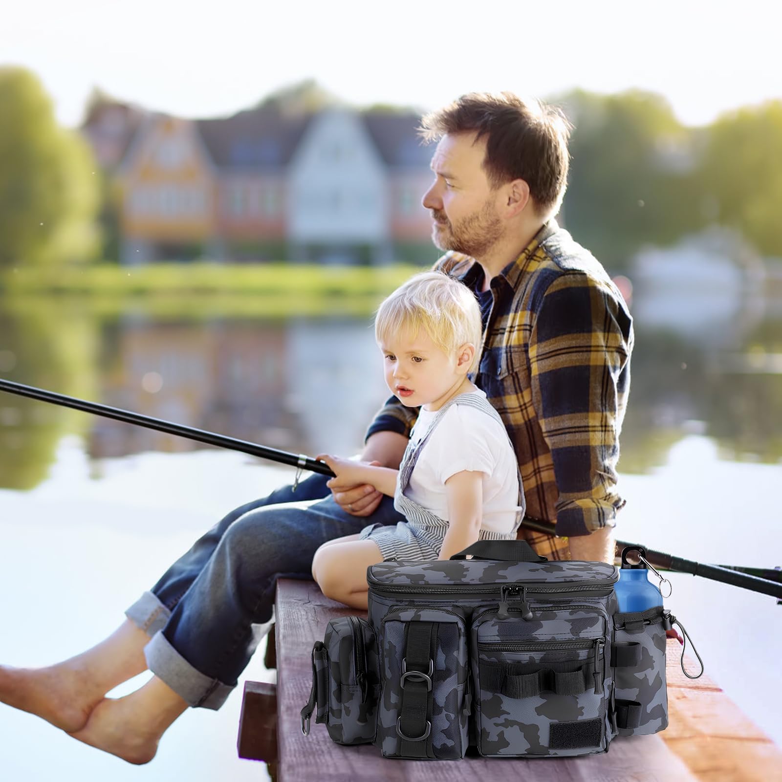 - LARGE CAPACITY & MULTILAYERED: Large-capacity space in the main pocket, can store up to 2- 3600 size tackle trays and includes two internal pocket, perfect for stashing wallet, power bank and more. Three external zippered pockets store your daily necessities. The left pocket is for water cups/bottles, and the right pocket is for tools such as pliers. The bottom strap can also store fish controllers, etc. for easy access. Multi-layered space, convenient for storing various items.