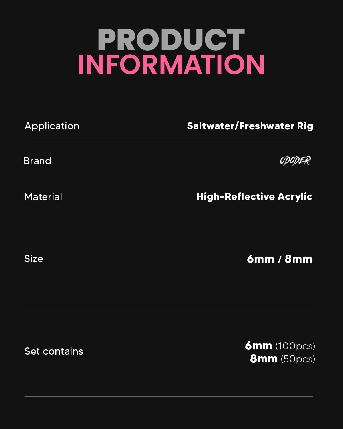 - Ultra-Reflective Design - Udoder Ultra-reflective beads shine brilliantly in both bright and low light, making them perfect for grabbing the attention of fish from a distance. Whether you’re out on a sunny afternoon, a cloudy day, or during low-light hours like early morning or late evening, these beads help boost your chances of a strike.