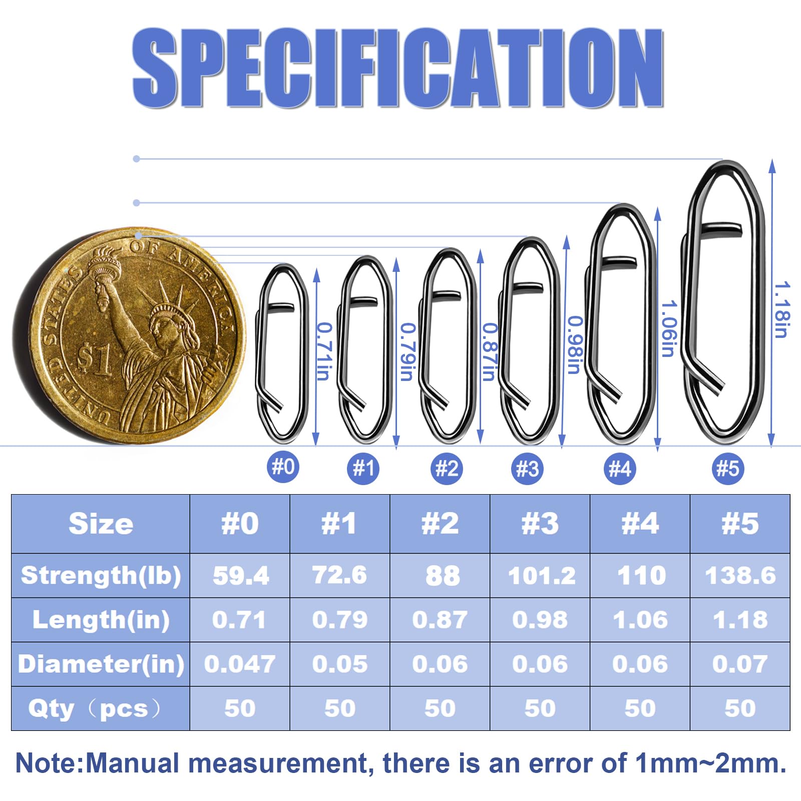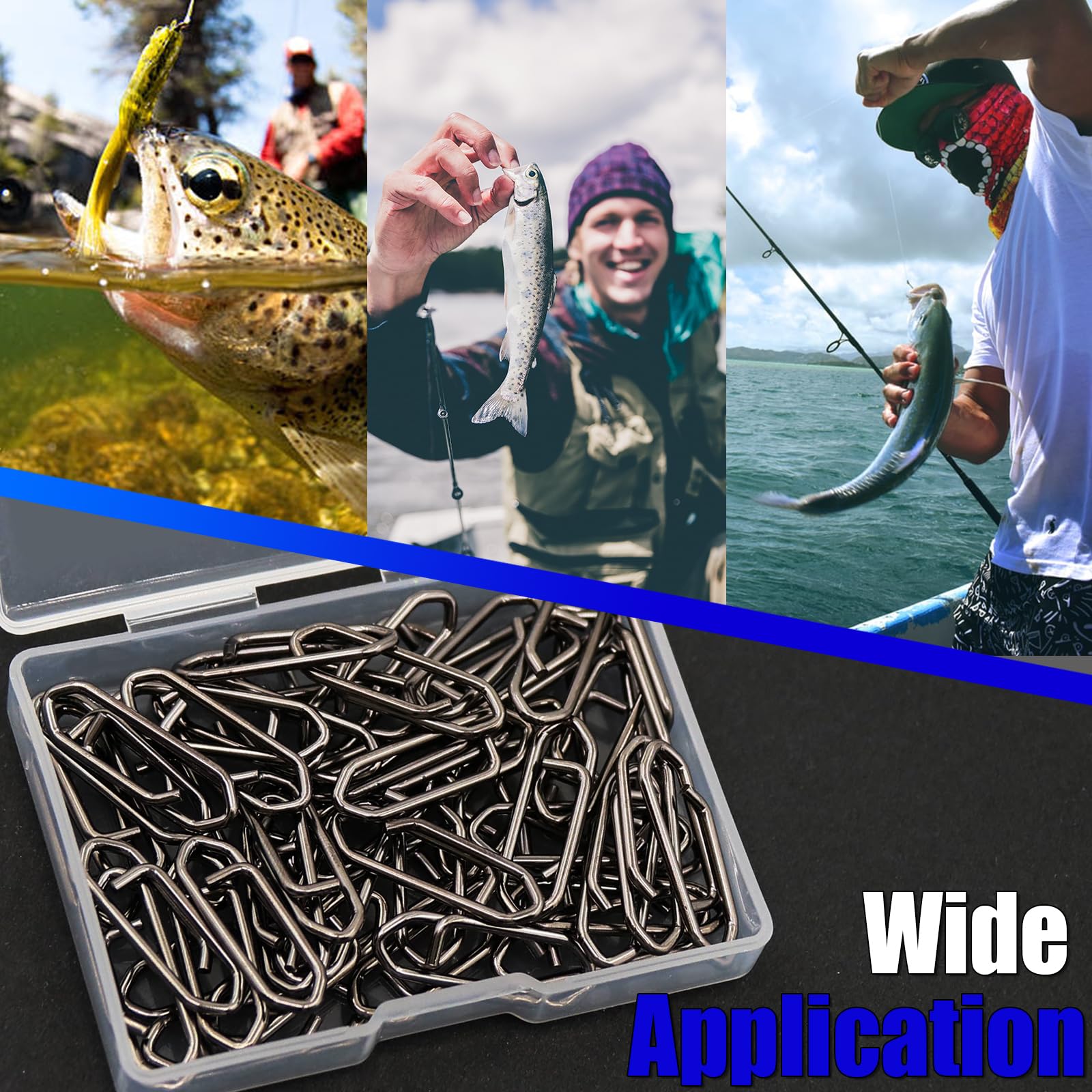 - 【Multiple sizes】6 sizes are suitable for use not only in fresh water but also in salt water.Fishing clips can be used for different fishing scenarios such as Baitcasting Fishing, Spining Fishing, Surf Fishing