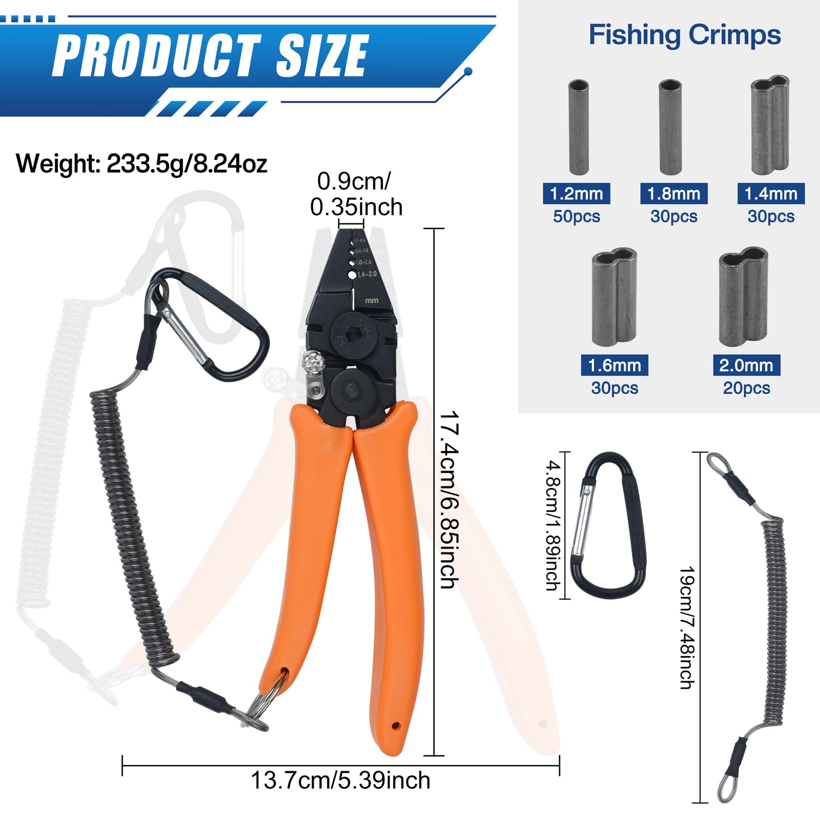- Package Include: 1 Fishing crimping pliers + 1 Box of 160pcs Crimp Sleeves.