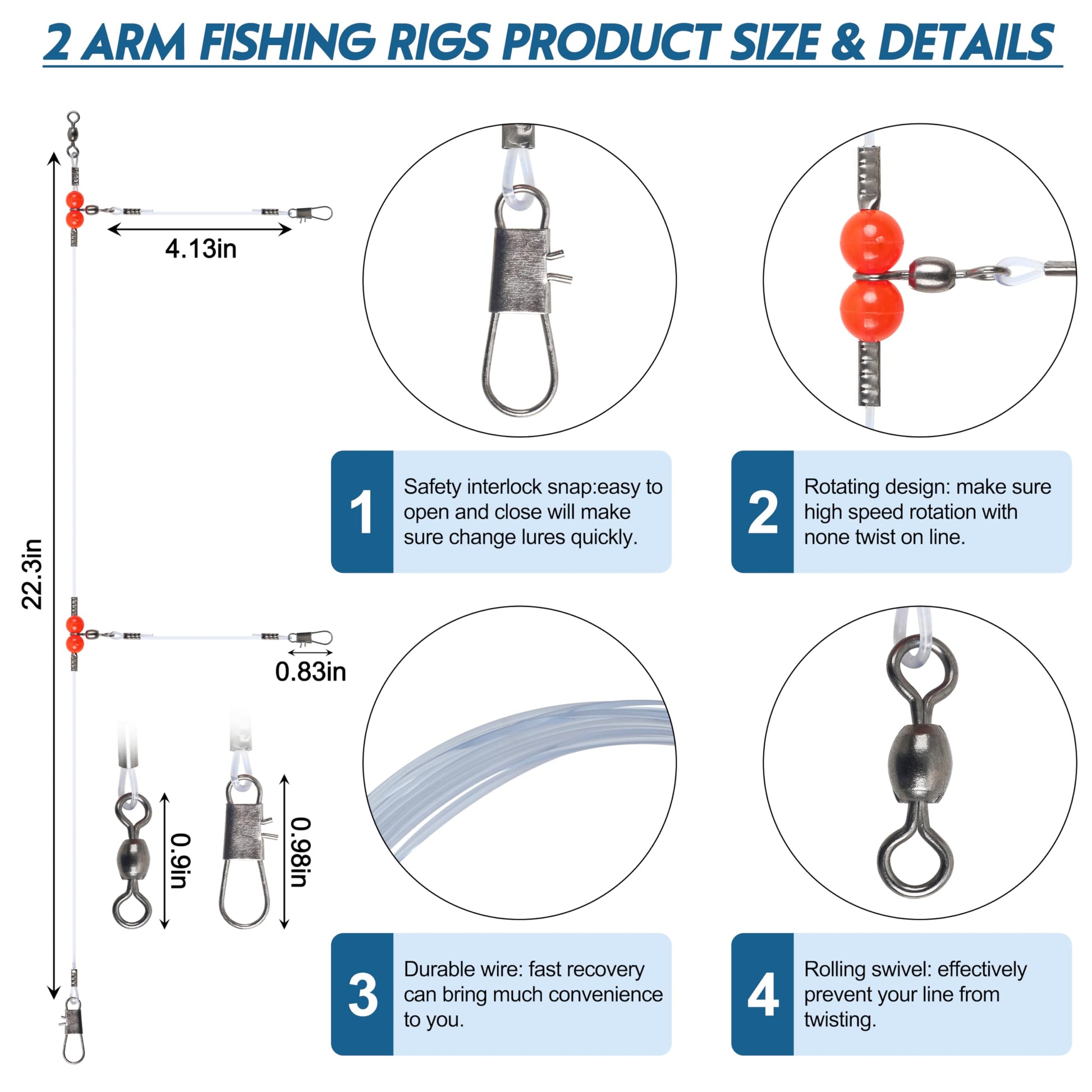 - LEADER CONFIGURATION: Saltwater bottom fishing rigs consist of monofilament line, swivels, snaps and red bead, need to worry about twisted wires due to stuck swivels