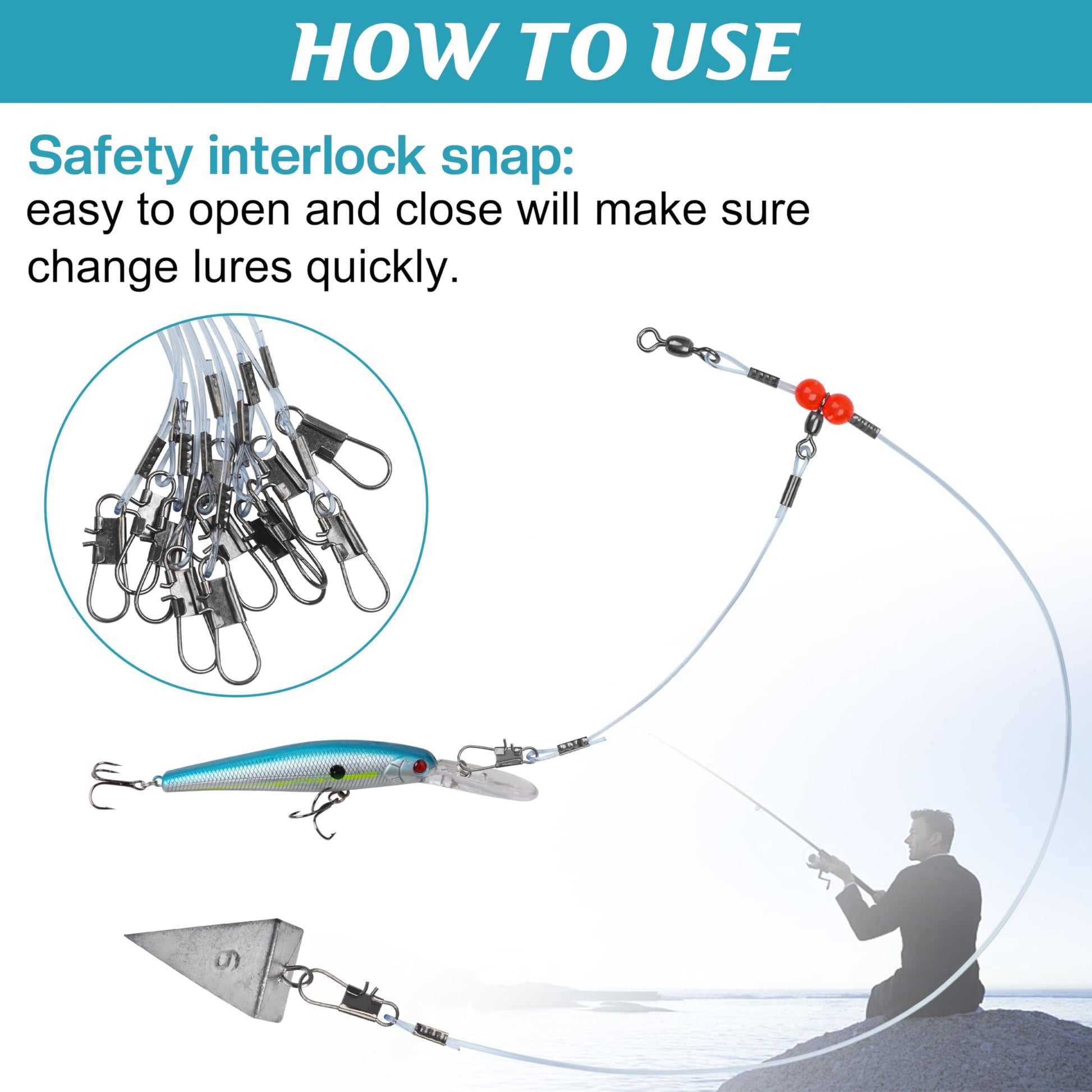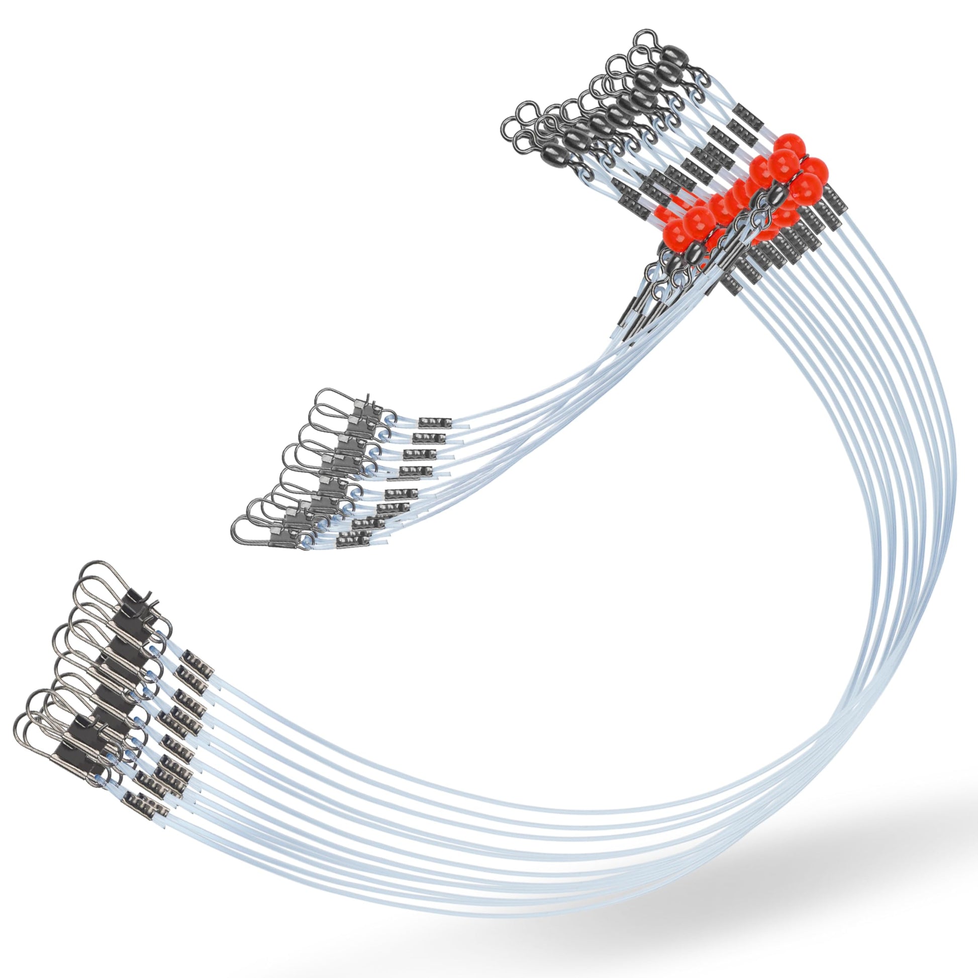 - WHAT YOU GET- 12PCS Nylon fishing wire leaders with 1 arm/2 arms, equipped with snaps, swivels and red beads.Using a fishing leader is a good idea and can help you take your surf fishing game to the next level