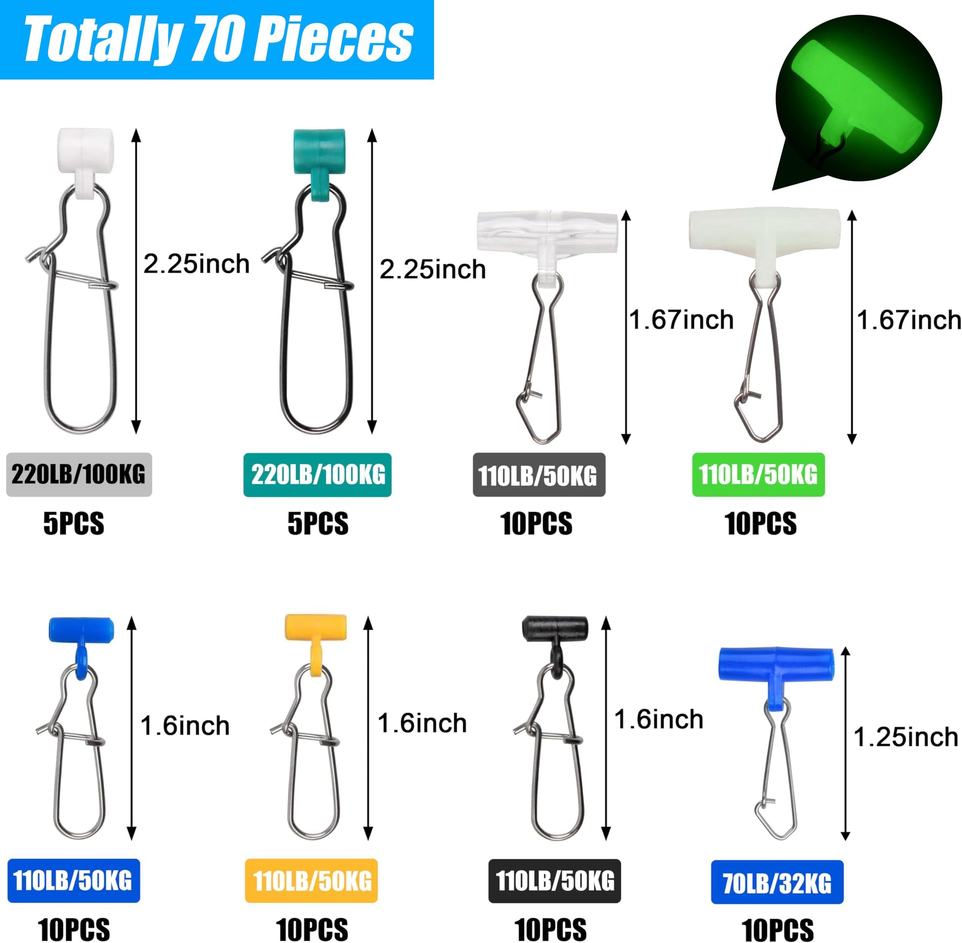 Fishing Line Sinker Slides, 70pcs Heavy Duty Sinker Slider with Stainless Steel Duo-Lock Snap Swivel Weights Connector for Catfishing Rig Tackle