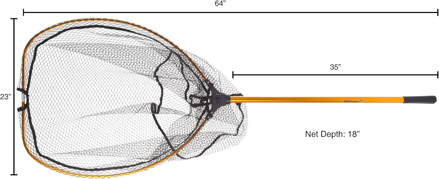 - EXTENDABLE TELESCOPING HANDLE- With a telescoping handle, this landing net is adjustable to multiple lengths (47.5”, 64.5”, 80”). The ergonomic handle also adds ideal balance and grip when sporting for catch-and-release fish.
