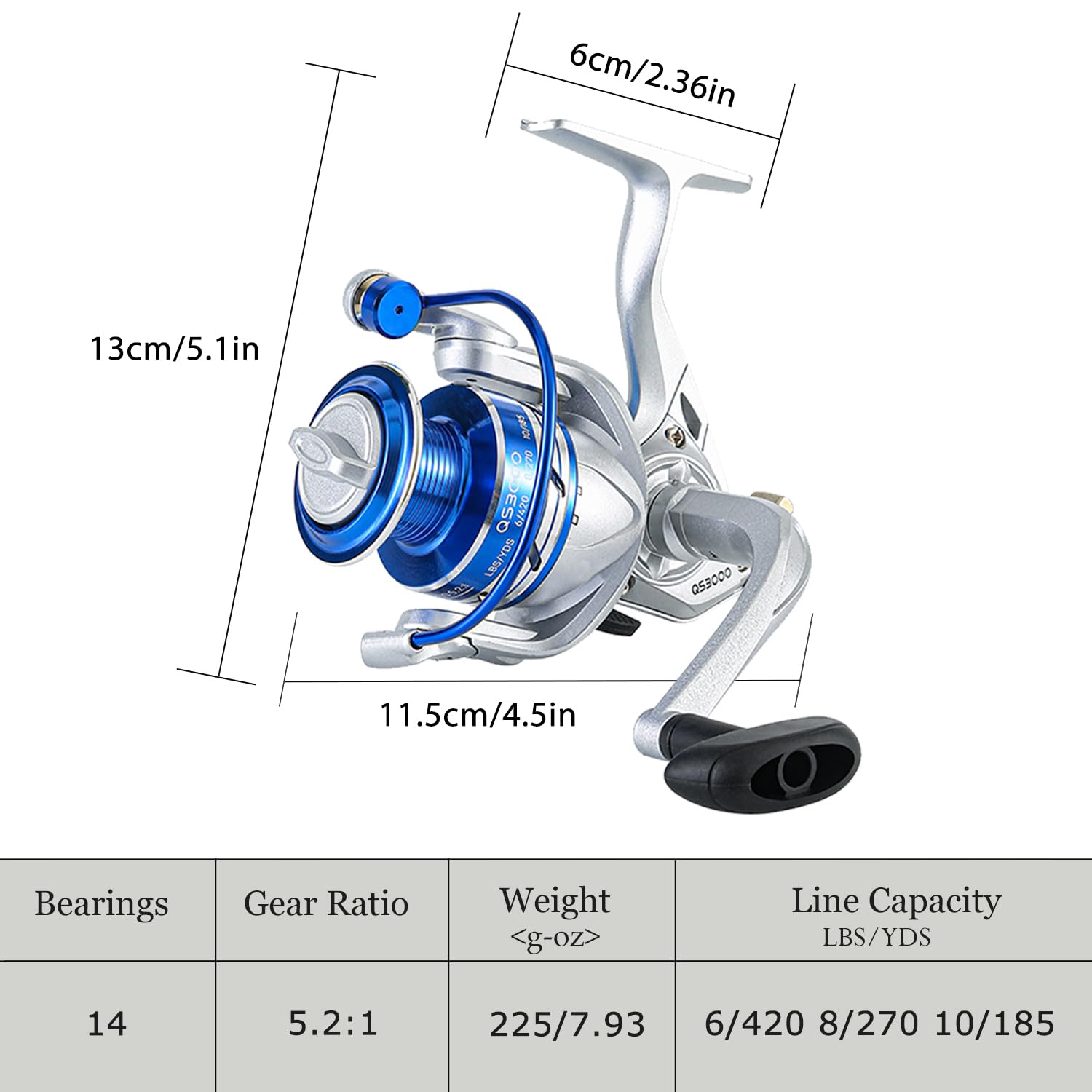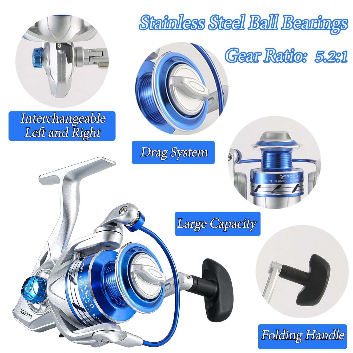 - The Tripquips fishing pole set also includes 2PCS of QS3000 spinning fishing reels, featuring a folding design and comfortable handles. The left handle and right handle interchangeable allows for convenient control of the fishing reel, catering to different user habits