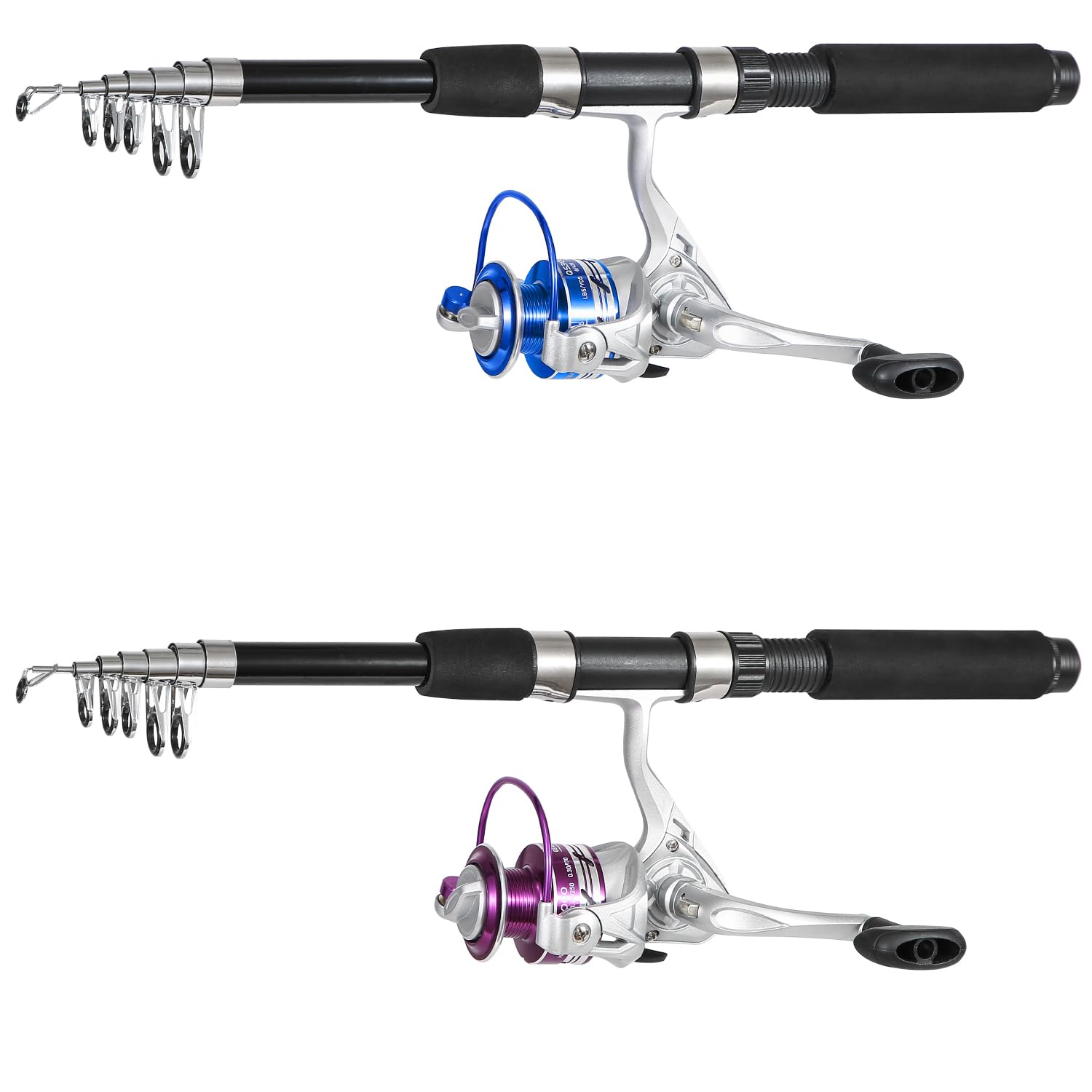Fishing Pole Combo, 6.9ft 2Pcs Telescopic Rods Set, Collapsible Carbon Fiber Fishing Rods, 2PCS Spinning Reel Set with Carrier Bag Freshwater Fishing Rod and Reel Combos Kits(Blue and Purple)