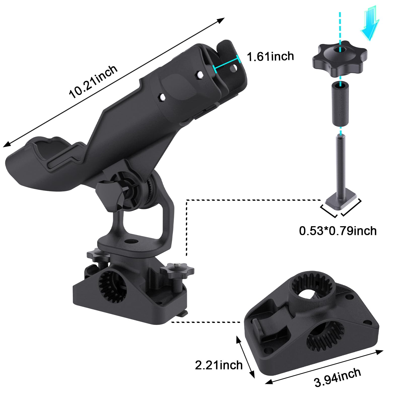 - 【Great for Boat Track System】Include 1 Fishing Rod Holder and 1 Track Mount. Easy to install , reposition and remove on the track of the kayak or boat. Just insert T bolts into gear track and slide to desired position, then slide the washer onto the T bolt ,followed by the locking nut. don’t need to drill holes.