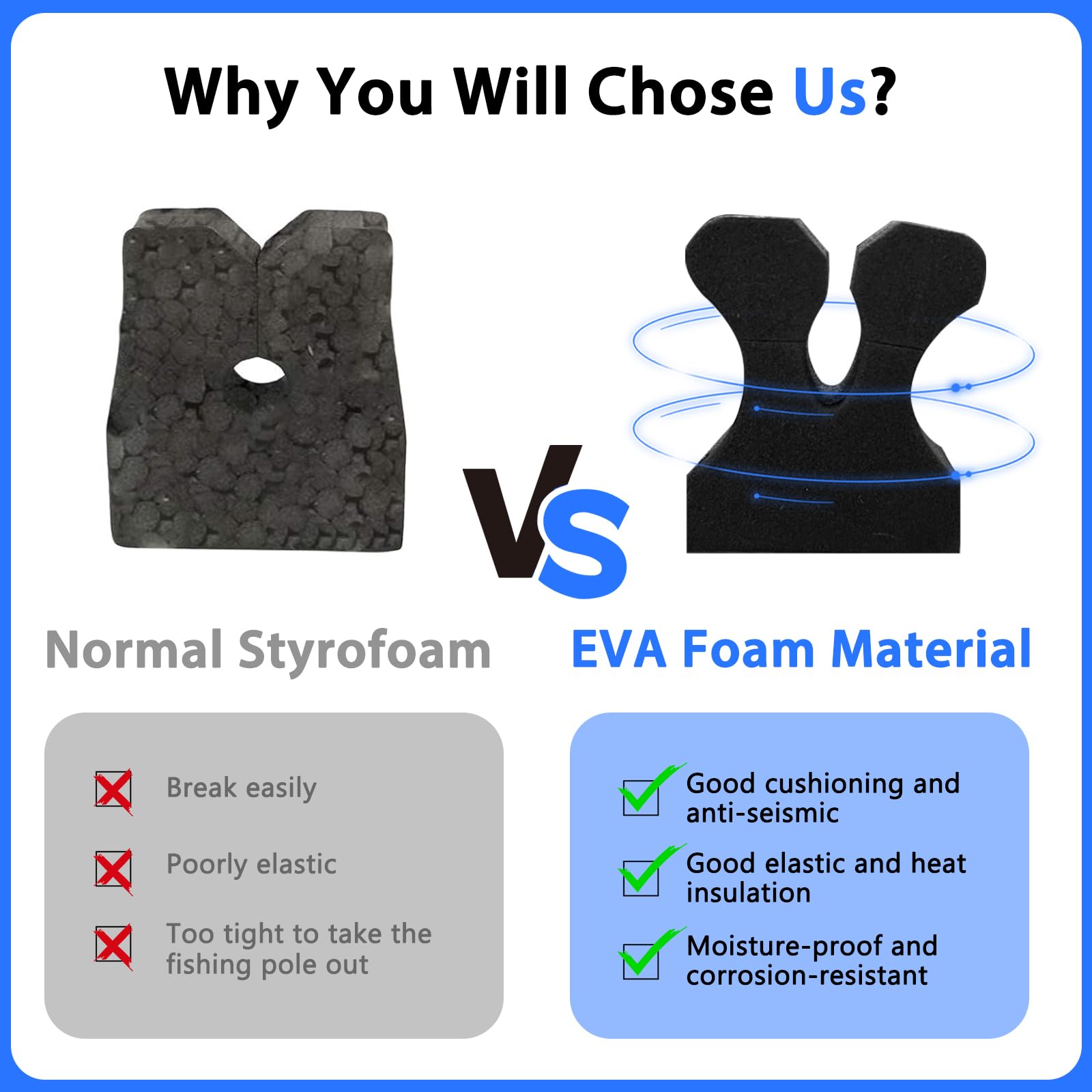 - 【High-Quality EVA Foam Material】The Simple Deluxe fishing rod rack grip pads foam is made of EVA designed to hold the poles safely and protect your rods from scratches. The vertical fishing rod holder has a sturdy ABS base, which prevents rods from sliding down