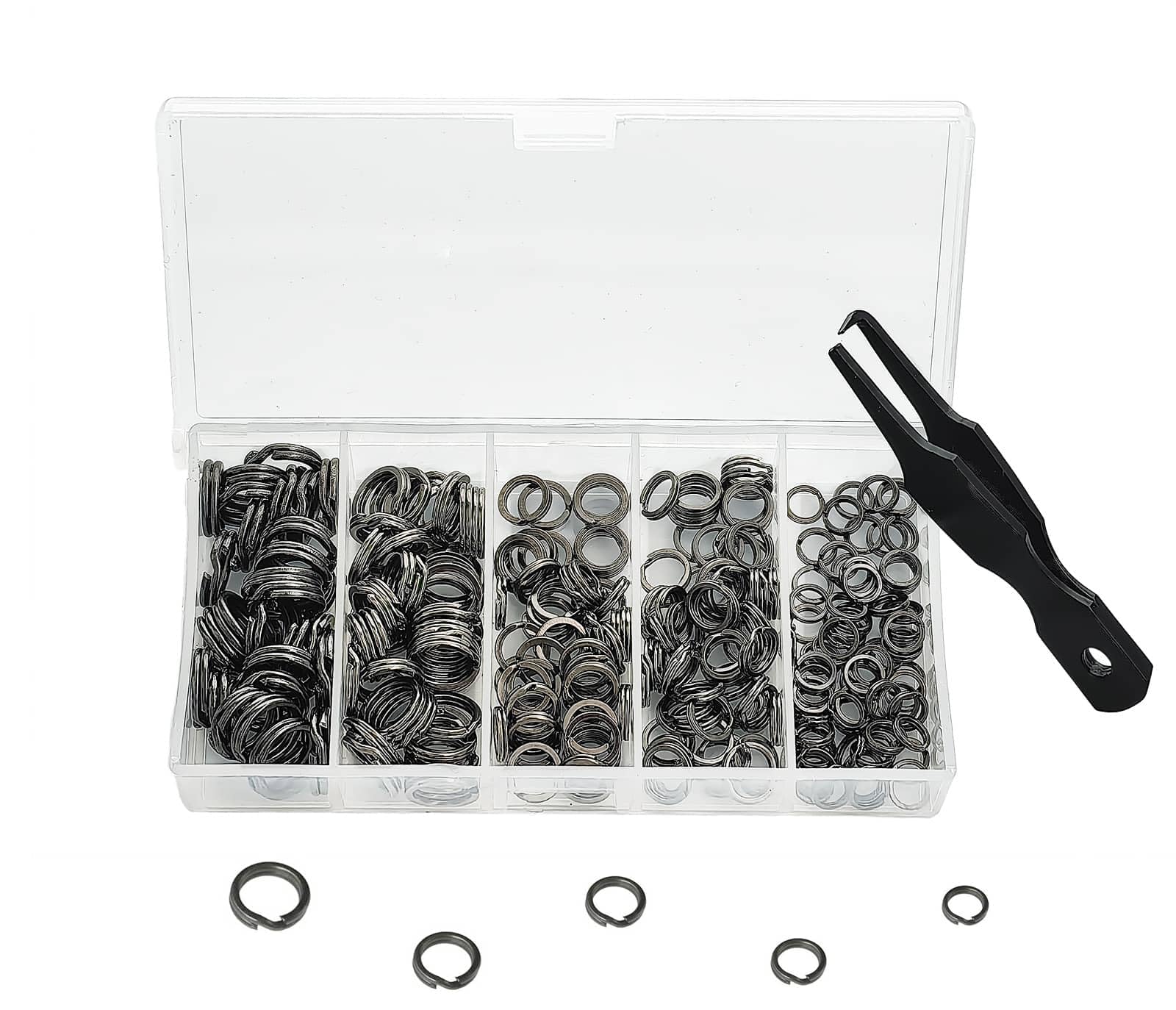 - Black Split Rings Size: 5.2mm 6.4mm 7mm 8.9mm 9.8mm. 250Pcs/Box Assorted Size Split Rings with Mini Plier Set for fishing lure Making Supplies.