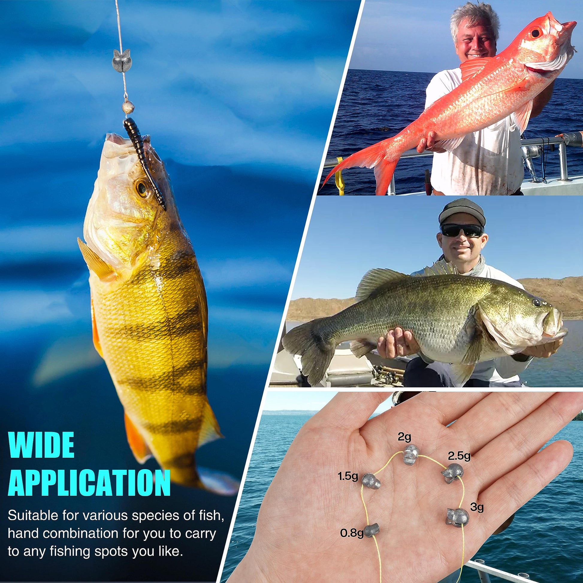 - SPLIT SHOT WEIGHTS: 5 different size to choose 0.028oz/0.8g, 0.052oz/1.5g, 0.07oz/2g, 0.088oz/2.5g, 0.1oz/3g. A variety of sizes will help you to catch different species of fish