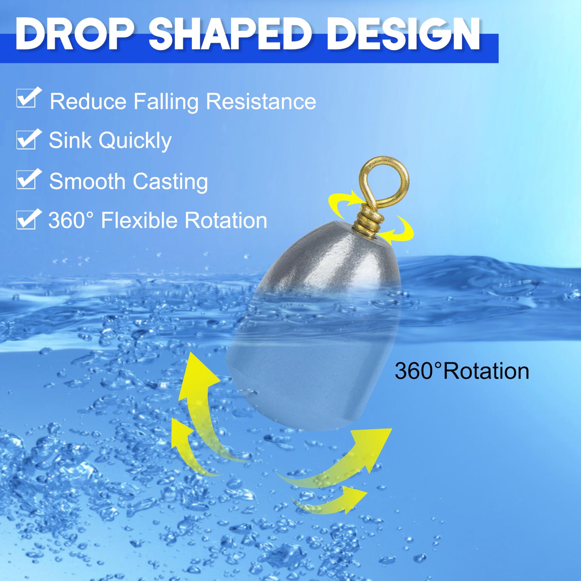 - PRATICICAL DESIGN: Fishing weights sinkers features a drop shaped design that reduce falling resistance, speed up sinking and increase casting distance,in the bottom of the water can effectively avoid obstacles.