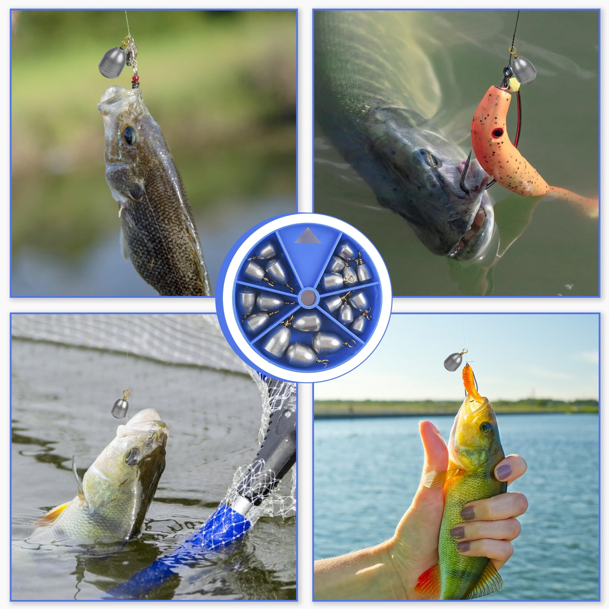- PORTABLE: 19pcs Bass casting sinker weight kit, assorted in 5 different sizes: 1/8oz-6pcs,3/16oz-5pcs,1/4oz-4pcs, 3/8oz-3pcs, 1/2oz-1pcs. comes with a handy plastic box to easy carry