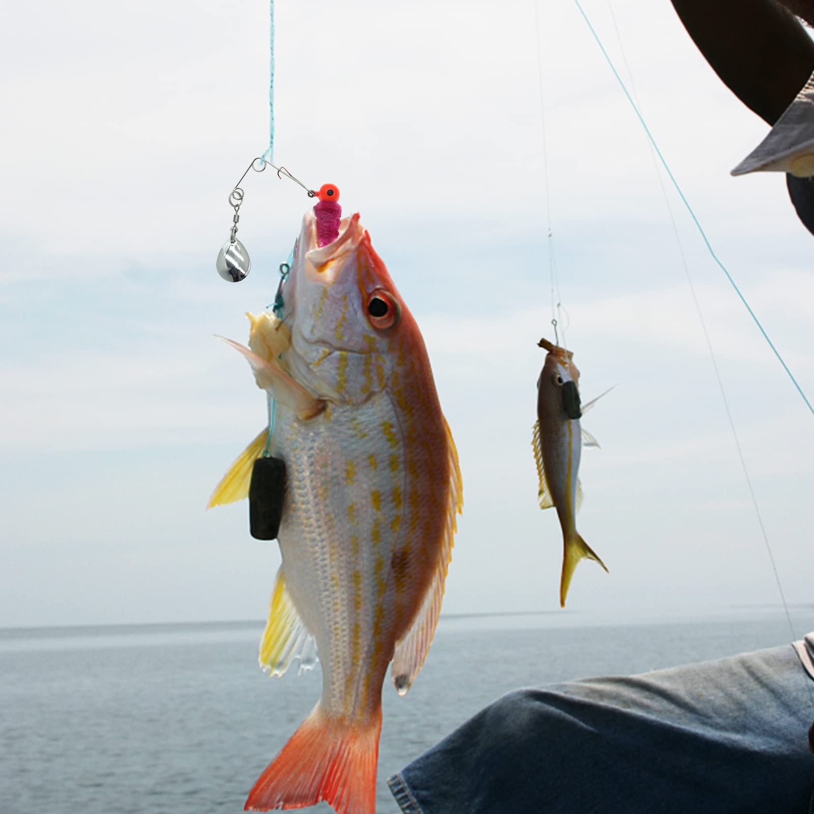 - Attractive Jig: Each jig head is brightly colored, providing bright 3D eyes to make it look vivid and realistic, and add a leaf blade under the basic lead hook design, can produce flash, you can see them even in dim light conditions, effectively attracting more target fish.