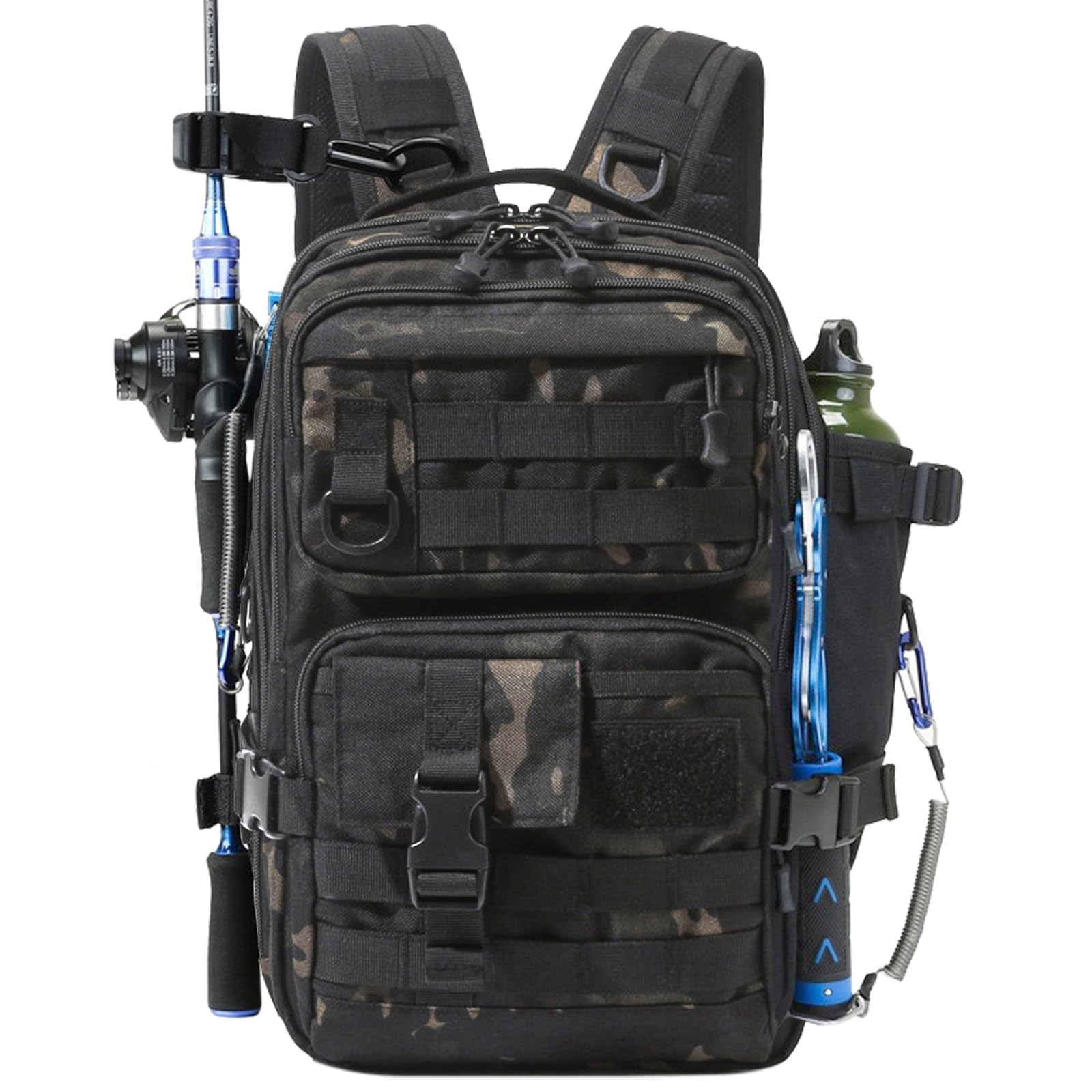 - Large storage capacity: This fishing backpack has 8 storage pockets, and multi -layer zipper space, which is convenient for the storage and collection of various items. The side is equipped with a fixed fishing rod strap to reduce the swinging of the fishing rod. The fishing gear storage package is adopted with hanging design outside, which can be hung with multiple small items to use it convenient and flexible.
