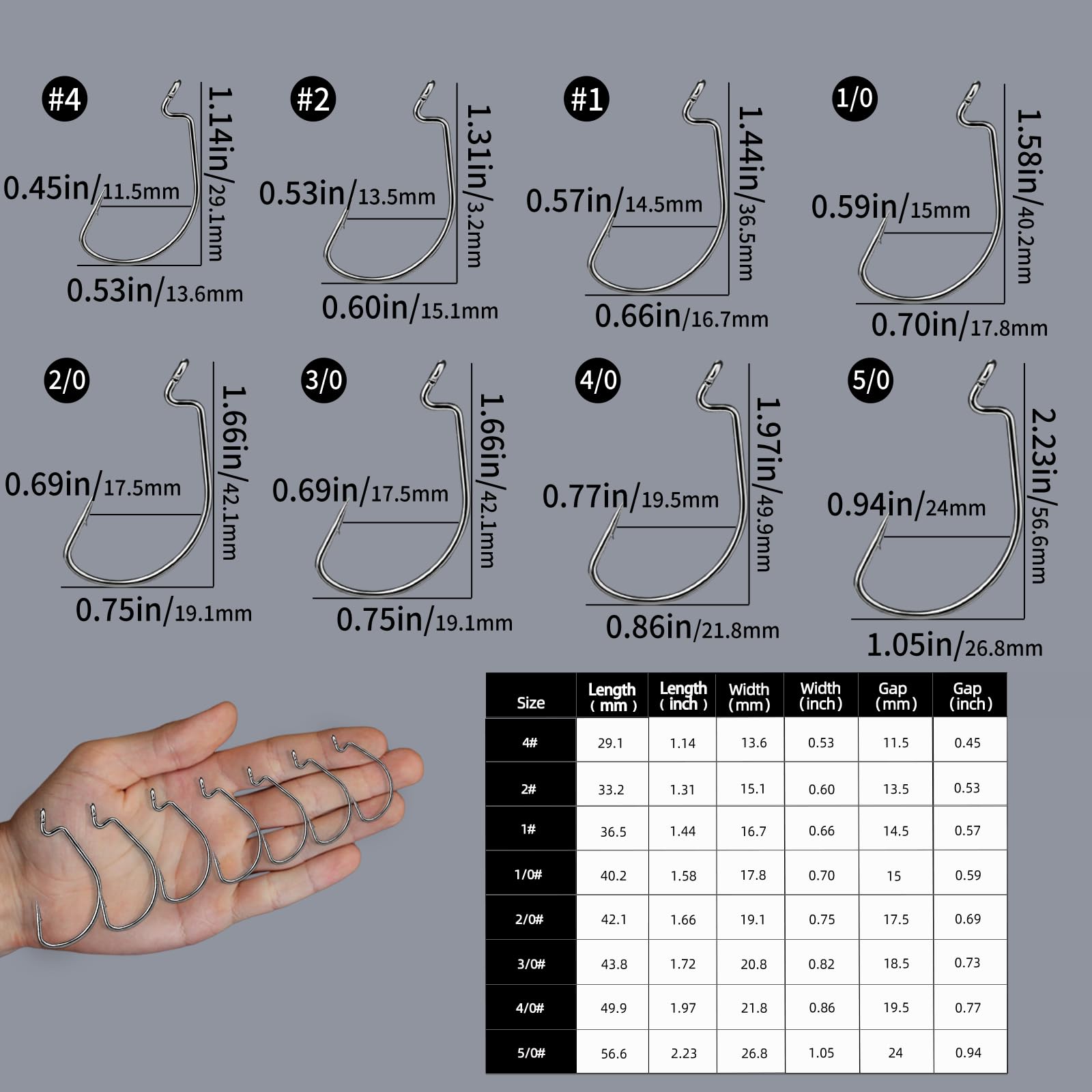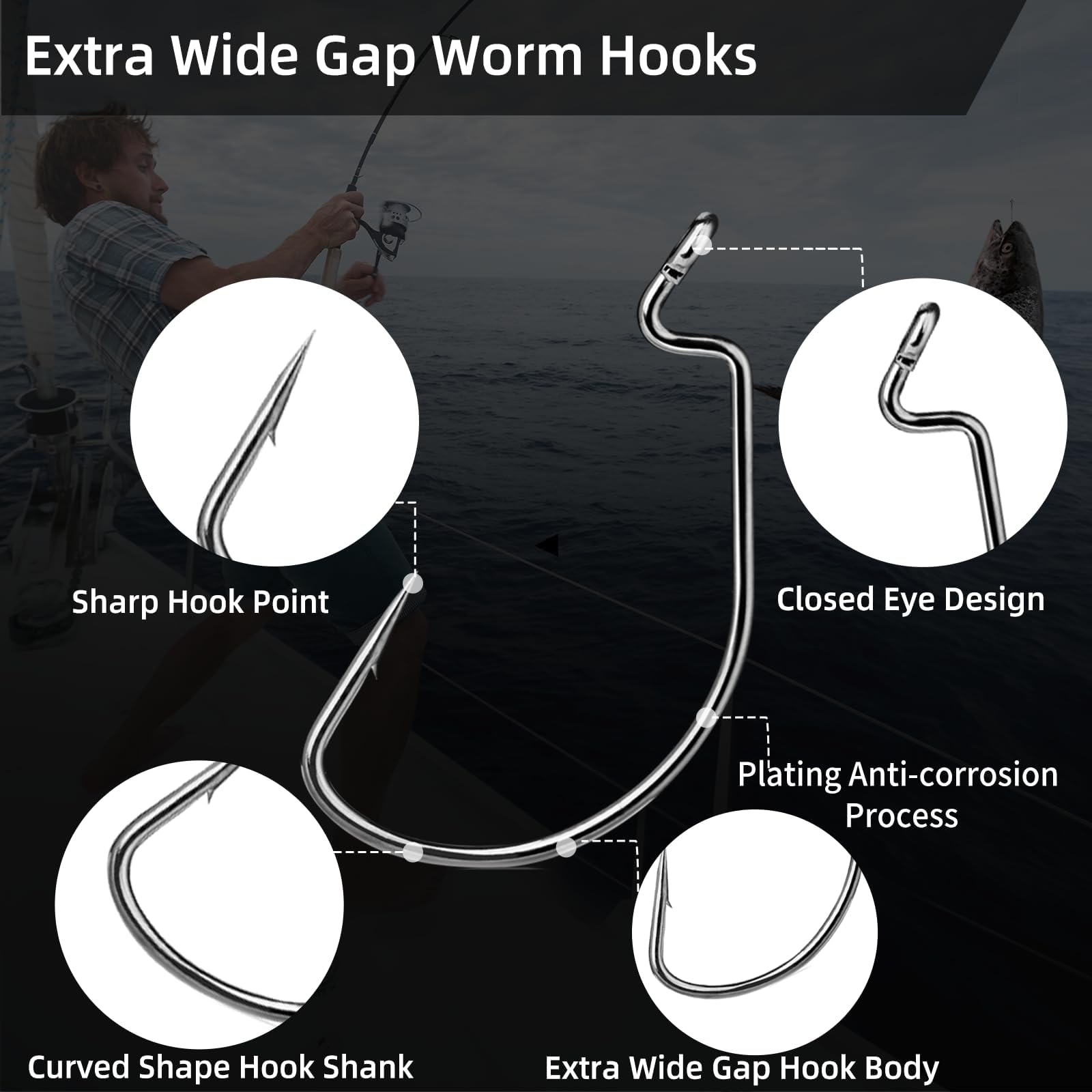 - FishTrip EWG Hooks with an extra wide gap and offset shank, these hooks provide ample space for bass and pike to bite down on the hook, while the sharp point ensures a secure hold. Plus, the closed eye and offset worm hooks make them ideal for jigging and attracting fish with ease.