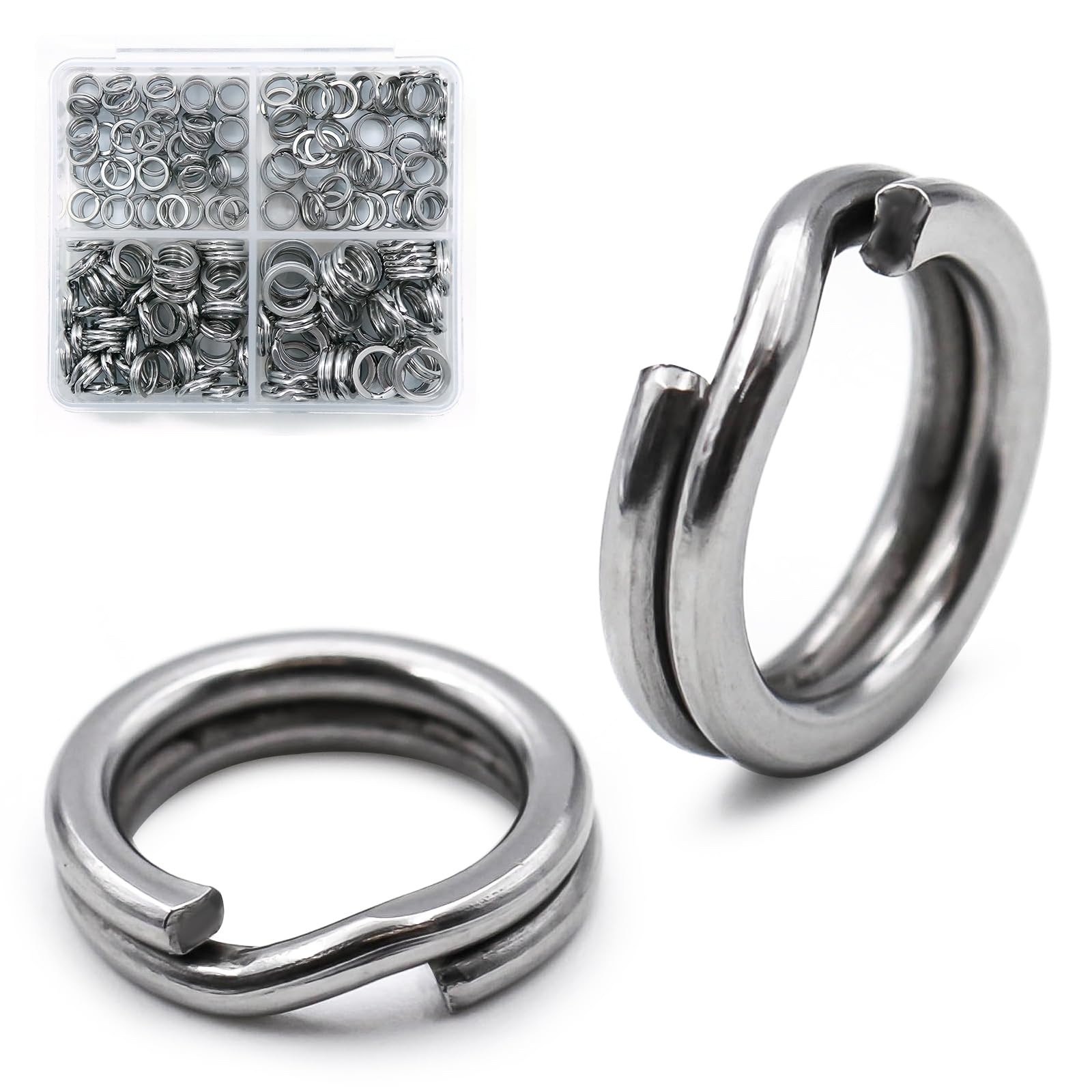 - [Sturdy] The high-quality material and the high-strength flattening process of the machine greatly increase the strength of the ring.Reduce the risk of being pulled apart by fish.Even after opening to fit larger hooks, these split rings will remain closed without retaining memory.