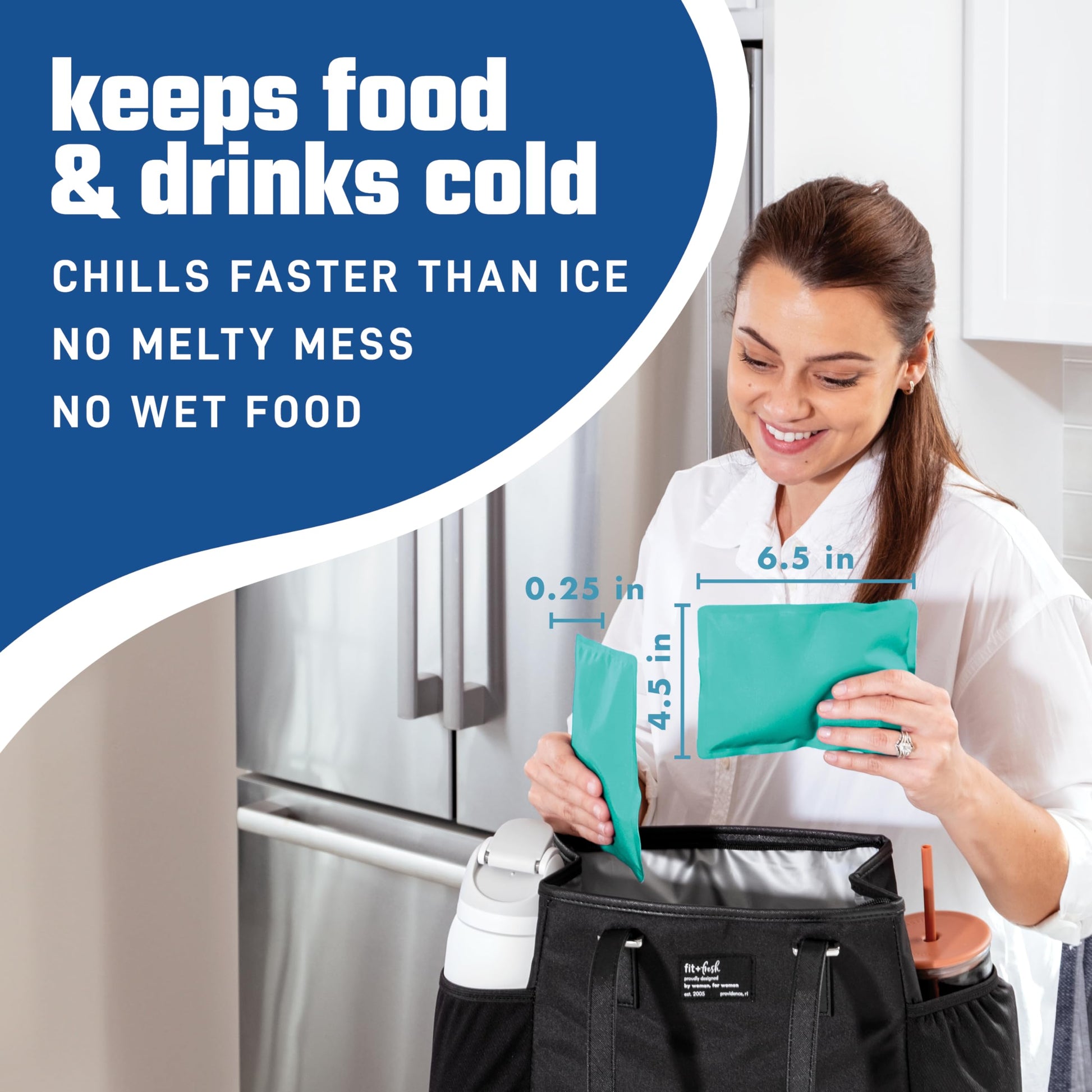 Fit & Fresh Cool Coolers 2 Pack Soft Ice for Lunch Bags, Flexible Stretch Nylon, Durable, Reusable Lunch Box Ice Packs, Ice Packs for Lunch Boxes, Reusable Freezer Packs, Easy to Clean, Teal