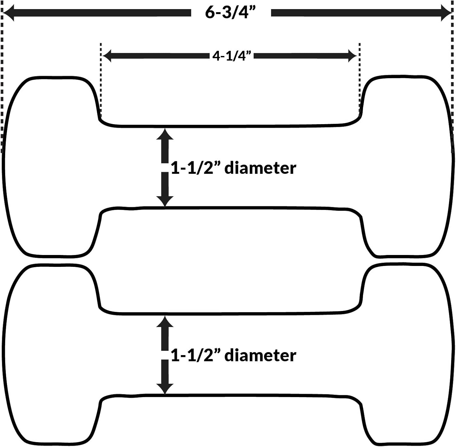 - DIMENSIONS: 6 in × 2-1/2 in × 2-3/8 in GRIP LENGTH: 3-3/4 inch GRIP DIAMETER: 1-1/4 inch