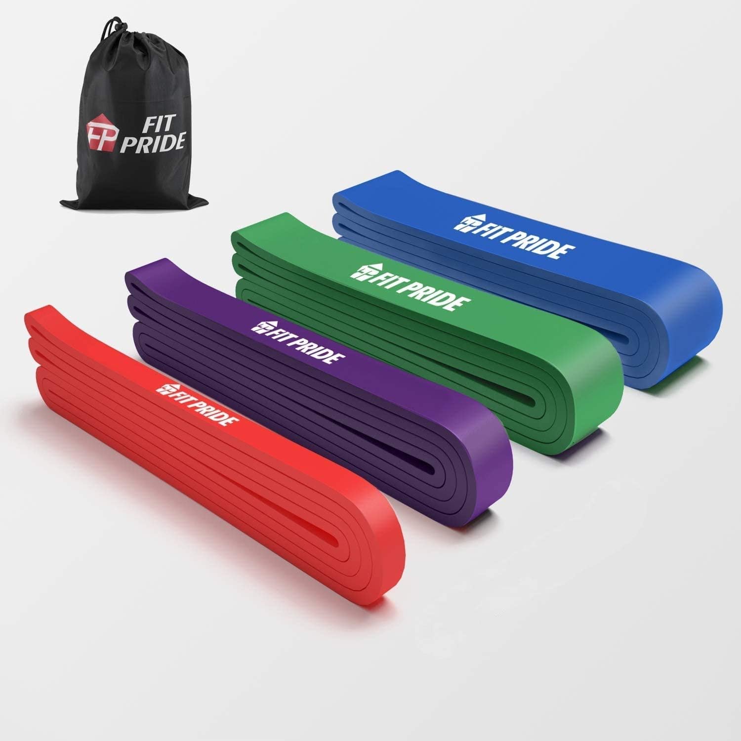 ARE YOU: -Tired of unhealthy and bulky exercise equipment?-Struggling finding time to workout?-Looking for a physical therapy solution?-Want an effective workout without expensive gym membership or home gym?RESISTANCE/PULL-UP BANDS ARE THE PERFECT SOLUTION! DYNAMIC WORKOUTS: Fit Pride's TOP SELLING Resistance/pull-up/exercise bands are ideal for home exercise and are perfect for cross fitters lading pull ups, chin ups, ring dips and muscle ups, muscle toning, fat burning, cross-fit, Pilates, and yoga. It is commonly used in P90X, Insanity, Beach Body and home gyms. PROFESSIONAL PHYSICAL THERAPY RECOVERY TOOL: Helps in recovery from torn MCL, ACL, knee replacement and patella/meniscus rehab. Great for improving mobility! PORTABLE & LIGHTWEIGHT: Resistance/pull-up/exercise bands take little space, are easy to carry with, and simple to use. Small enough to fit in your bag(use them anywhere you go). DURABILITY: Our resistance/pull-up/exercise bands are made of high quality 100% latex, and built to last and maintain elasticity over many years. We only distribute high-quality exercise tools(not the cheap bands that tend to break). WHICH BANDS ARE RIGHT FOR ME?Red: 5-35lbs tension 1/2’’ wide, 4. 5 mm thick, 41” longPurple: 10-60lbs tension 3/4’’wide, 4. 5 mm thick, 41” longGreen: 25-80lbstension 1 1/4’’ wide, 4. 5 mm thick, 41” longBlue: 50-125lbs tension, 1 3/4’’ wide, 4. 5 mm thick, 41” long100% Satisfaction for our high quality resistance bands!