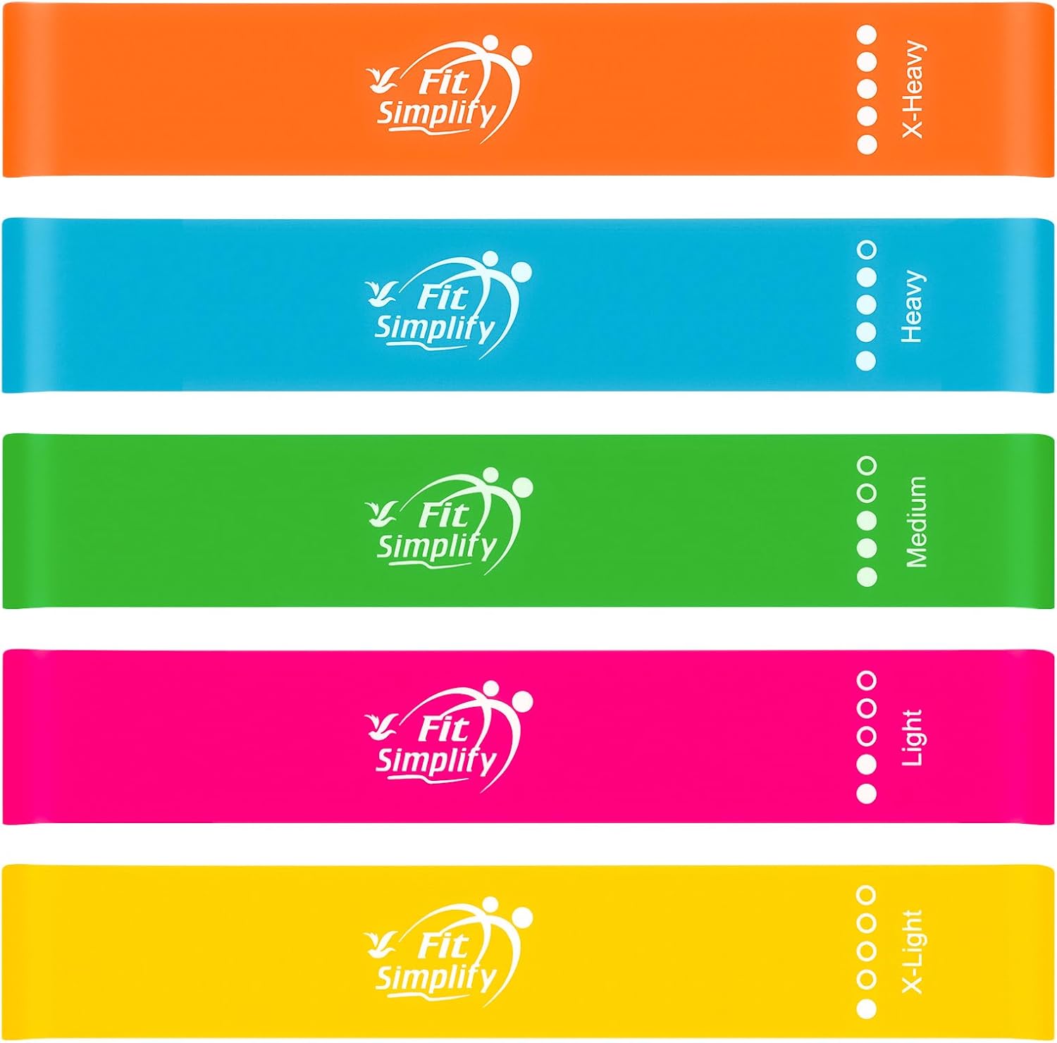 - Resistance Exercise Band Set: Great for beginner, intermediate, or advanced strength training this set of 10 inch by 2 inch resistance bands includes extra light, light, medium, heavy and extra heavy bands