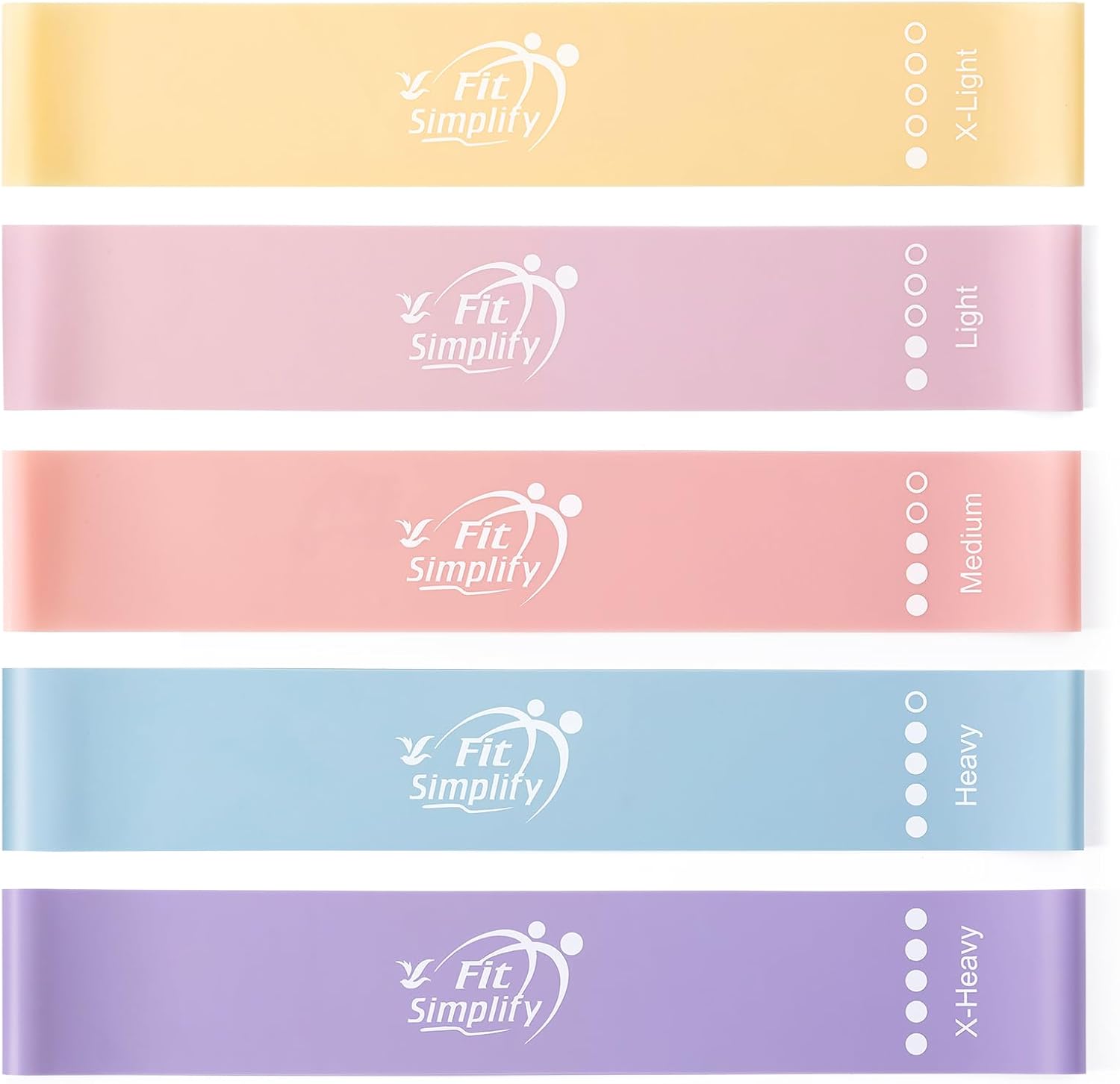 Fit Simplify Resistance Loop Exercise Bands with Instruction Guide and Carry Bag, Set of 5