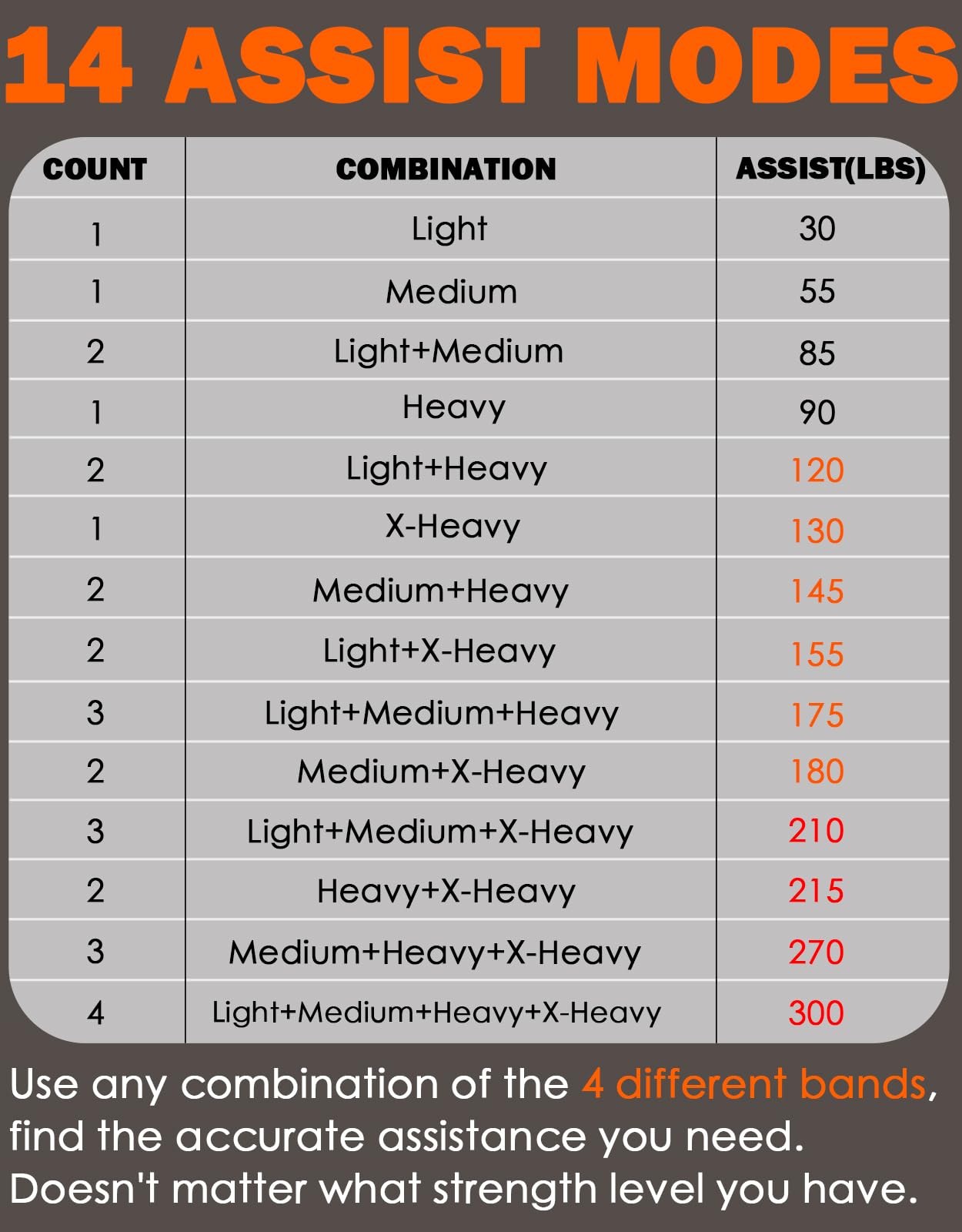 - Customizable Resistance Levels - We provide 4 different resistance bands that can be easily detached, each band has two triangular carabiners with locking mechanism. With up to 14 possible combinations, you can adjust the level of assistance to suit your strength needs.
