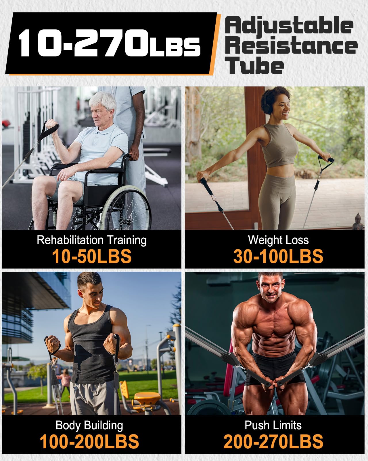 - Adjustable Resistance Bands: Maximum 270 LBS - 6 exercise bands (10/20/30/50/70/90 lbs), Designed for individuals ranging from 10 lbs to 270 lbs, these bands accommodate diverse fitness goals and lifestyles. Whether toning muscles, building strength, or undergoing rehabilitation, Our weight bands offer a flexible and efficient solution to achieve your fitness targets