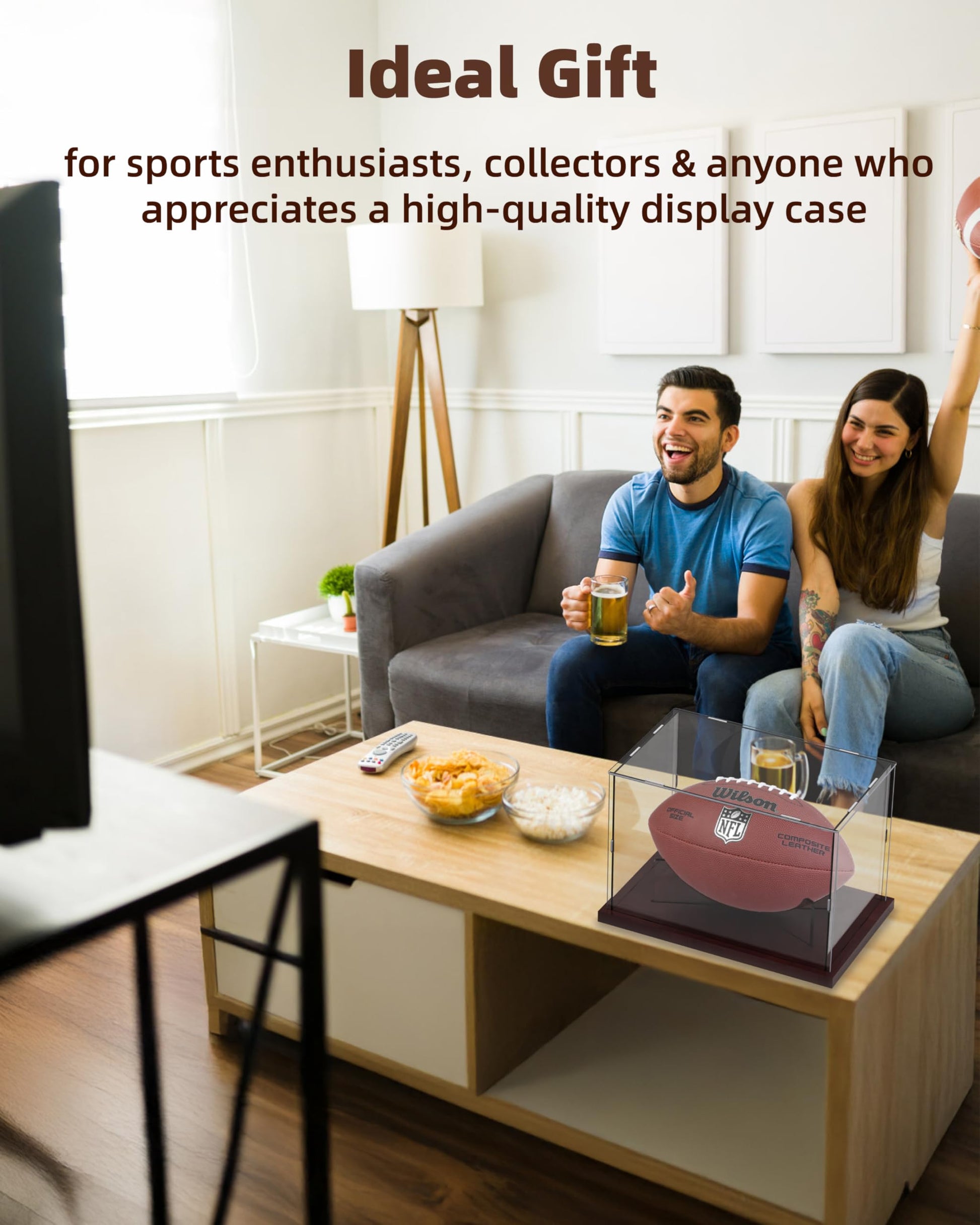 Fitense Football Display Case Acrylic Clear, Football Stand Holder Full Size with Solid Wood Base, UV Protected Football Display Box with Removable for Football Fans & Collectors, Memorabilia & Gift