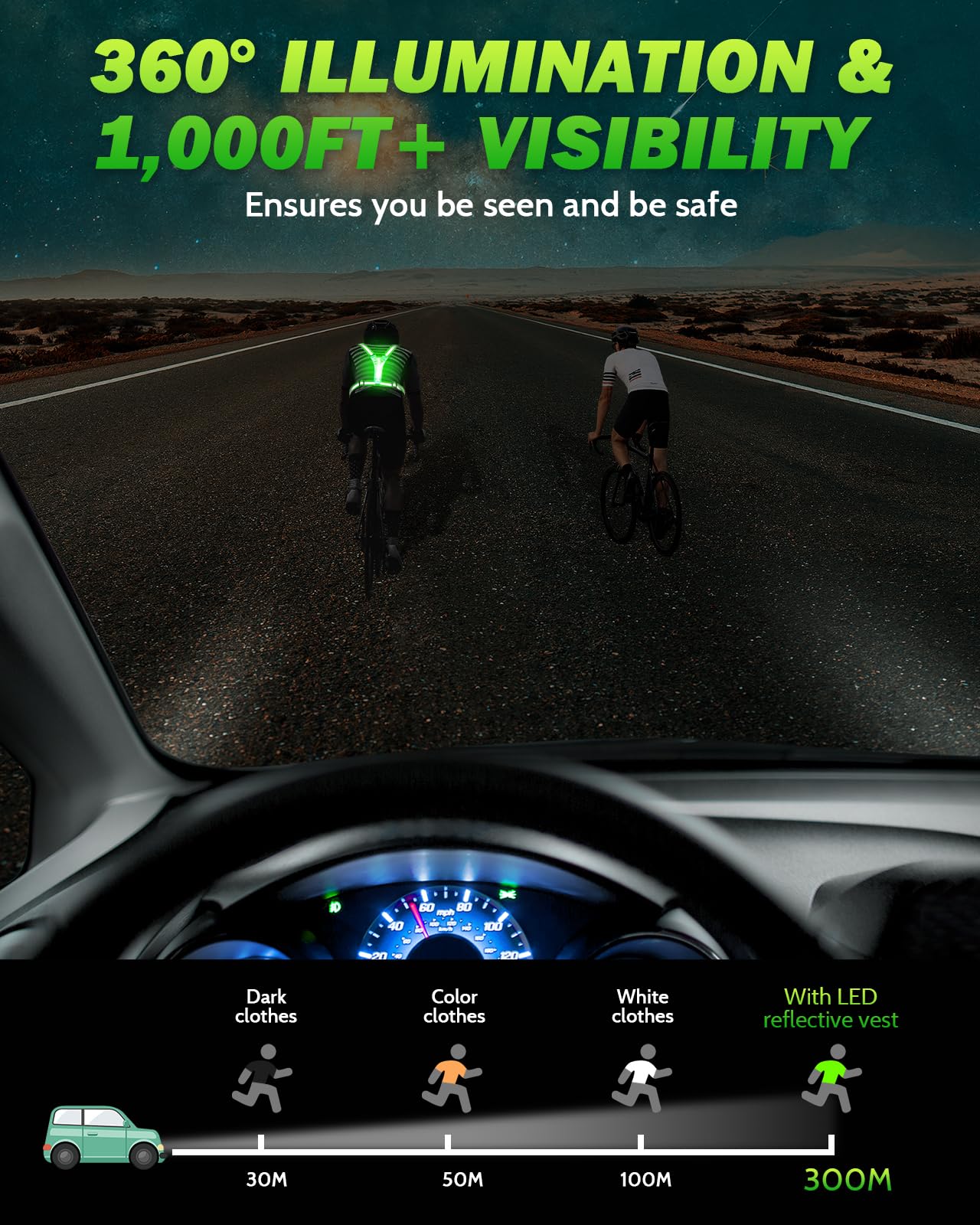 - Ultra- Bright & High Visibility: Fitense LED reflective vest running gear combines high-intensity LED running vest light and reflective straps to provide 360° visibility up to over 1,000 feet. It ensures you remain visible and safe in low-light conditions, enhancing your outdoor experience with peace of mind