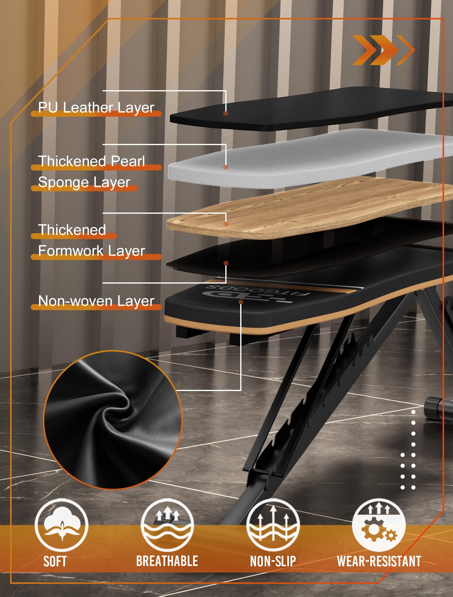 FitGoods Weight Bench Press, Foldable Workout Bench for Home Gym, 660 LBS Stable Incline Decline Bench for Full Body, Weight Benches for Home Gym, Sit up Bench Strength Training Benches