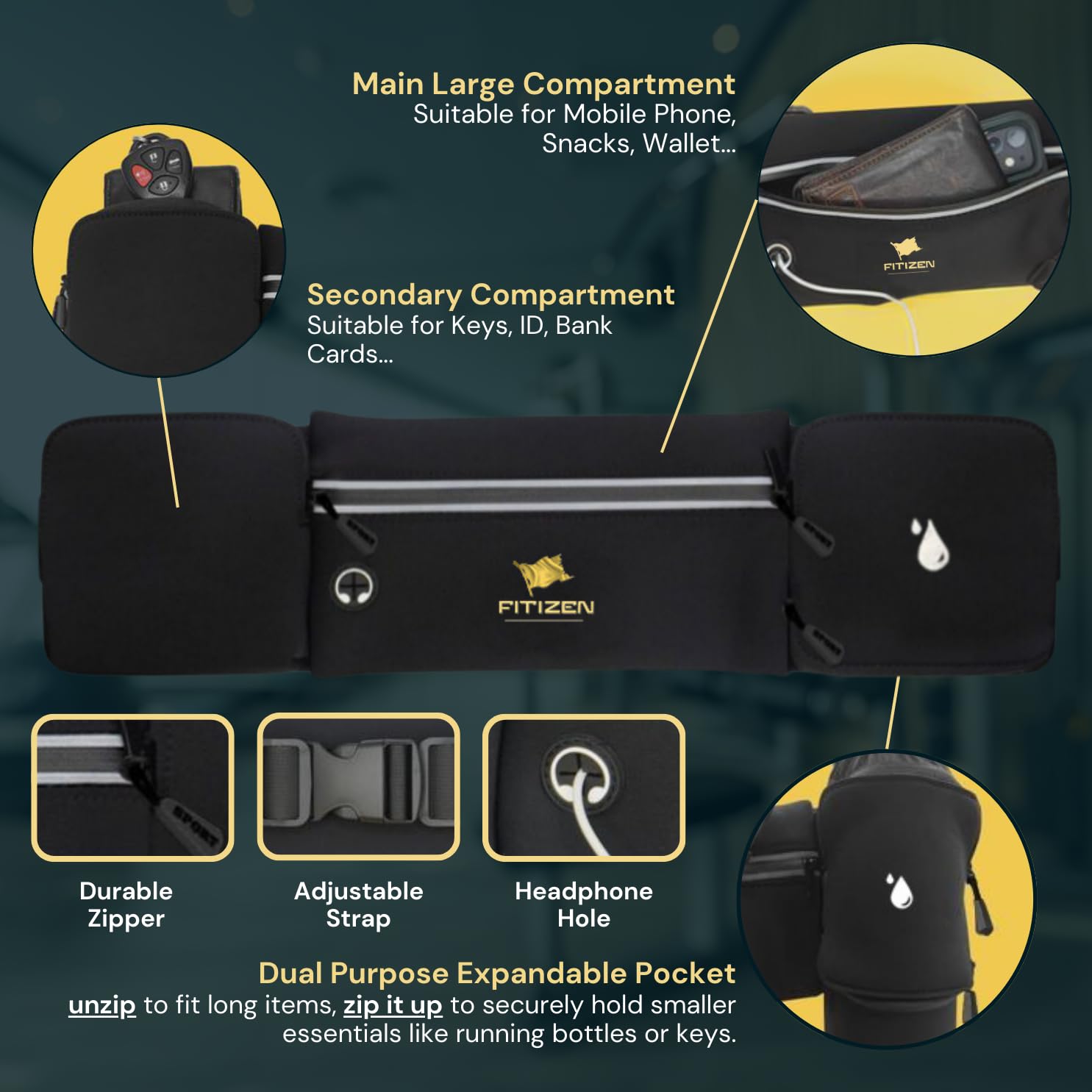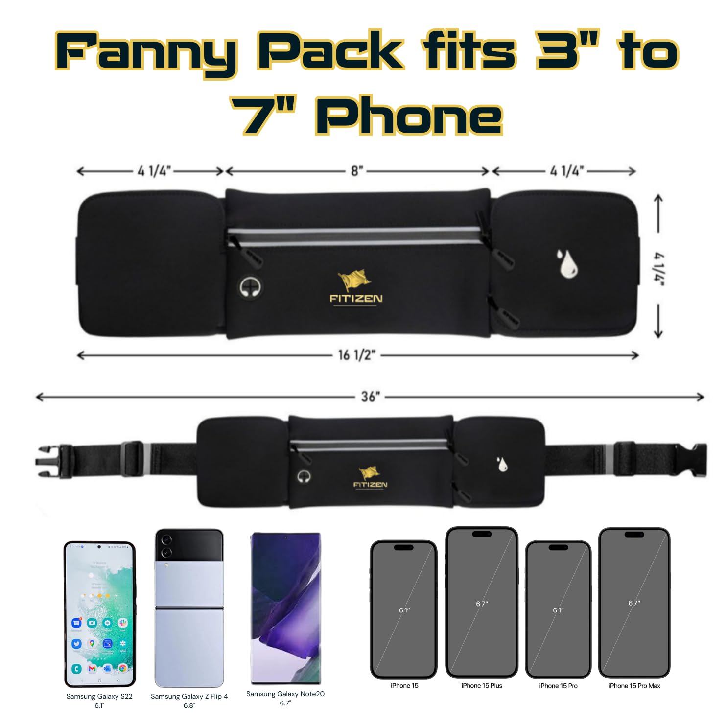 Fitizen Fanny Pack - 3 Pockets - Up To 36 In Waist - Slim Walking Belt For Men & Women Hiking Cycling Workouts Running & Travel - Reflective Pocket & Phone Belt Holder for the Fit Citizen By Fitnation