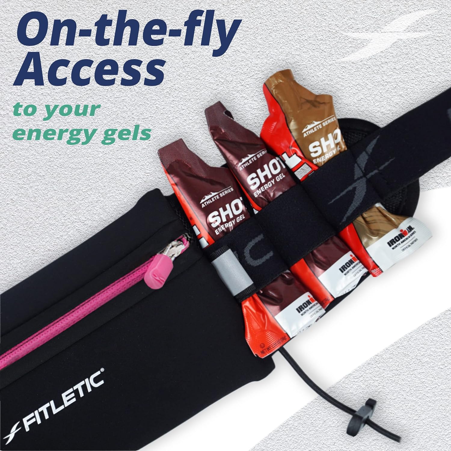 Fitletic Ultimate I Race Running Belt for Triathlons, Marathons – Water Resistant, Lightweight, Low Profile & Patented No Bounce- For Men & Women –– Ultra-Soft Dual Adjust Waist Belt- Fits All Phones