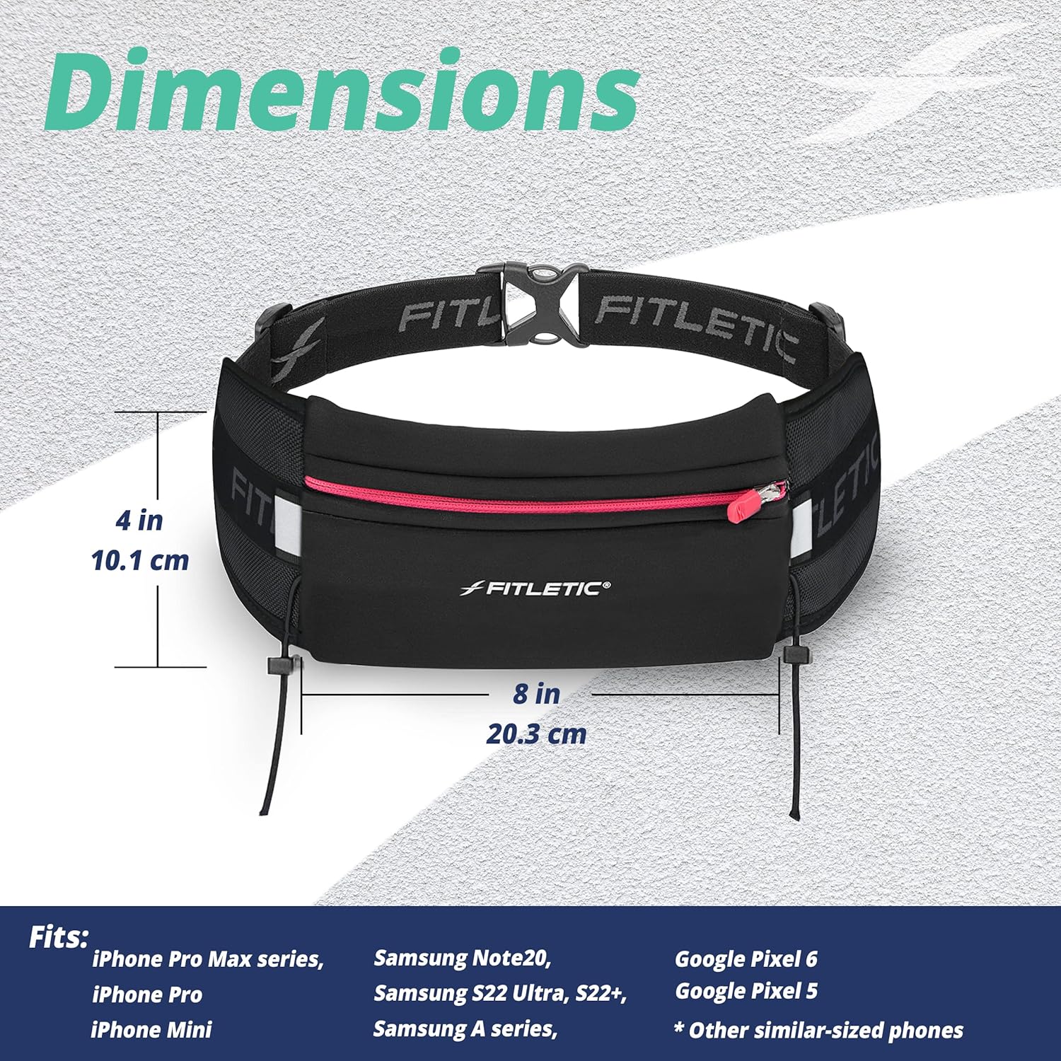 - Tailored Fit – All Fitletic running belts feature hip hugging ergonomics which contour to your individual body shape for a bounce free, enjoyable run. Lightweight, water resistant & sweat wicking materials ensure you won’t want to take it off!