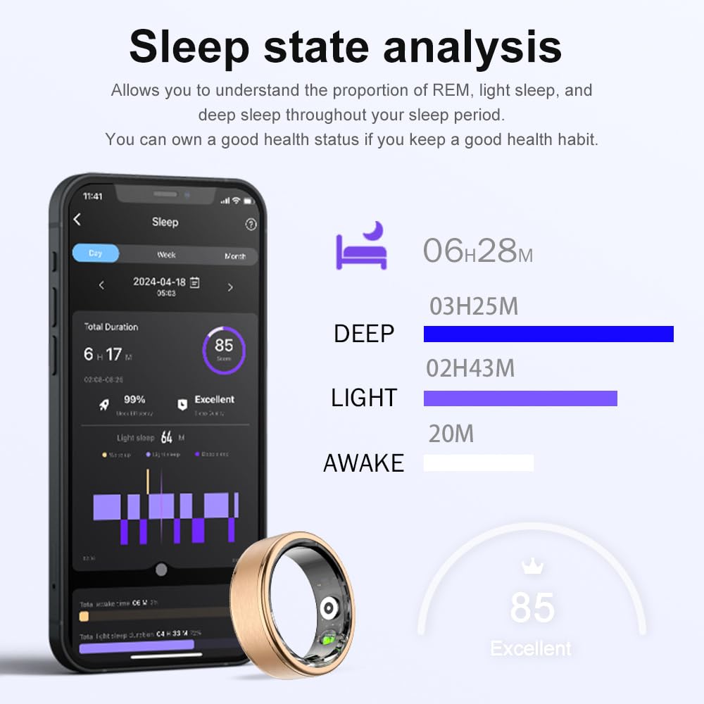 - 【Great Gifts for Men Women】This is a nice creative gift for men and women,while maintaining fashion, one can also care about their physical health.Can be used as a gift for anniversaries, birthdays, Christmas,etc.【IP68 Waterproof Smart Ring/Compatibility】Wear it without restraint,you can wear it when you sweat,wash hands(Do not soak in hot water or sea water).It supports iOS 8.0 or above,Android 5.1 or above.