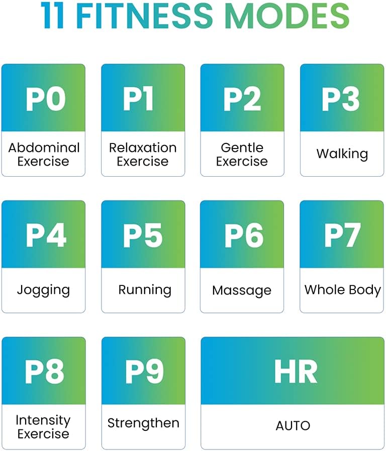 - 11 FITNESS MODES:There are 10 default and 1 AUTO speed in the exercise machine.P0-P9 & HR are shown sequentially each time you press the speed button.Variety of exercise modes allow you to try different vibration exercises or combine the vibration exercise with sit-up, push-up, yoga. Perfect for sports training, weight loss, fat burning and soreness relief.