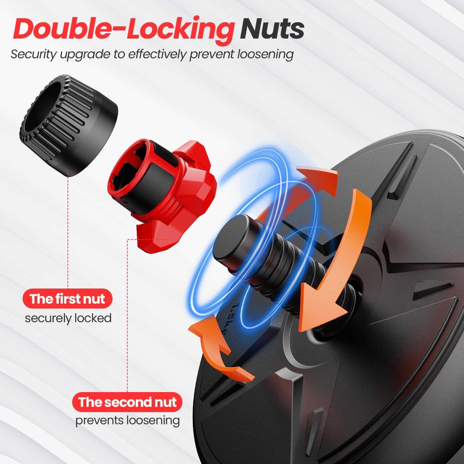 - 【Enhanced Safety with Double Nut】Upgraded double-lock nuts enhance safety beyond that of regular multi-purpose dumbbells. Suitable for all ages and experience levels, these dumbbells allow you to focus completely on your workout. Exercise with added peace of mind.