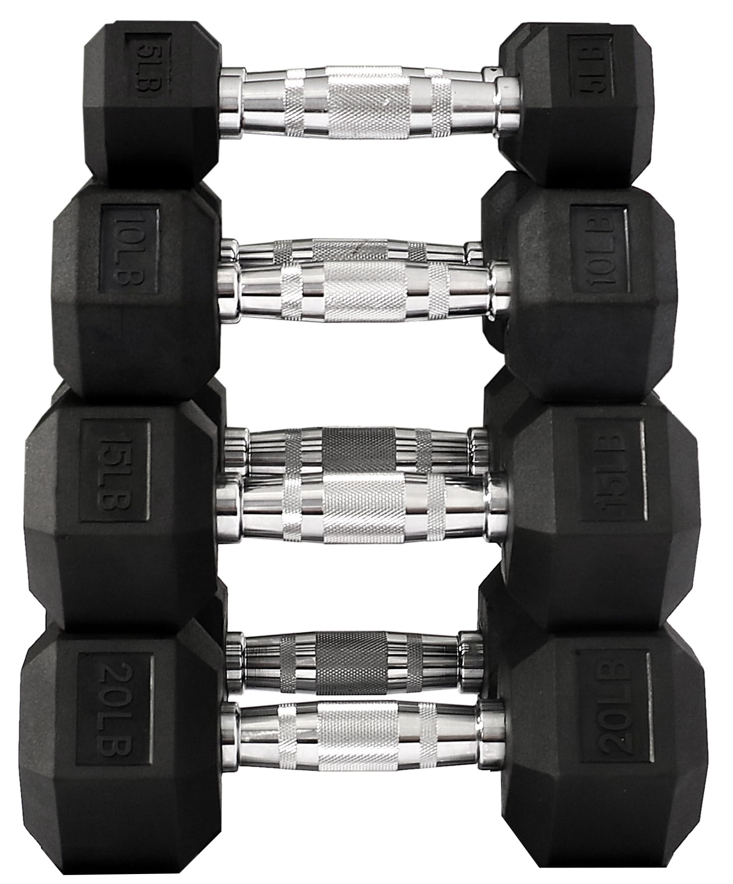 Fitvids Rubber Encased Hex Dumbbell, Set Including 5, 10, 15, 20LB Pairs