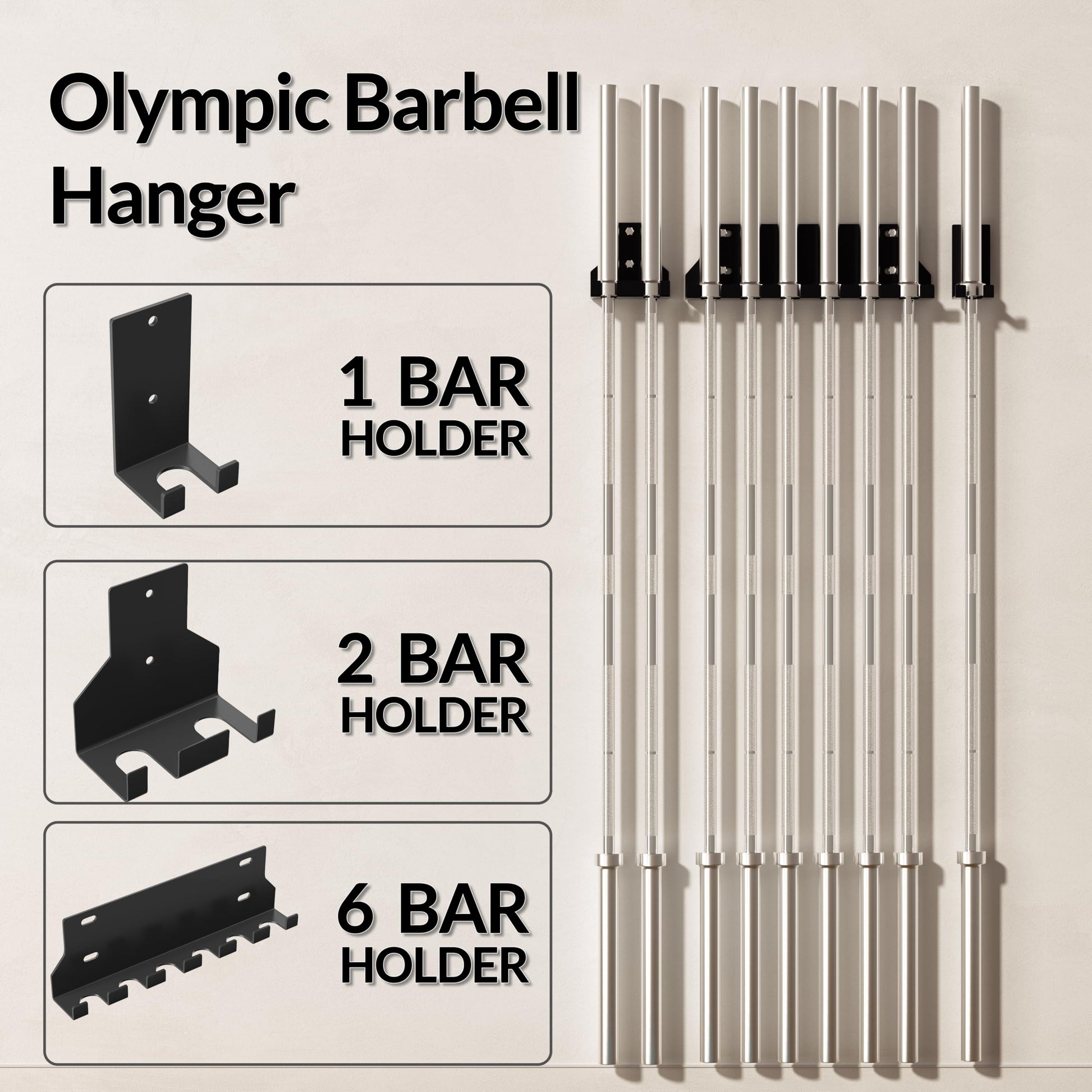 - Heavy Duty Steel - Barbell holders are made of high quality steel with a sturdy structure, providing a high load capacity. Fit 2" Olympic Barbell ONLY