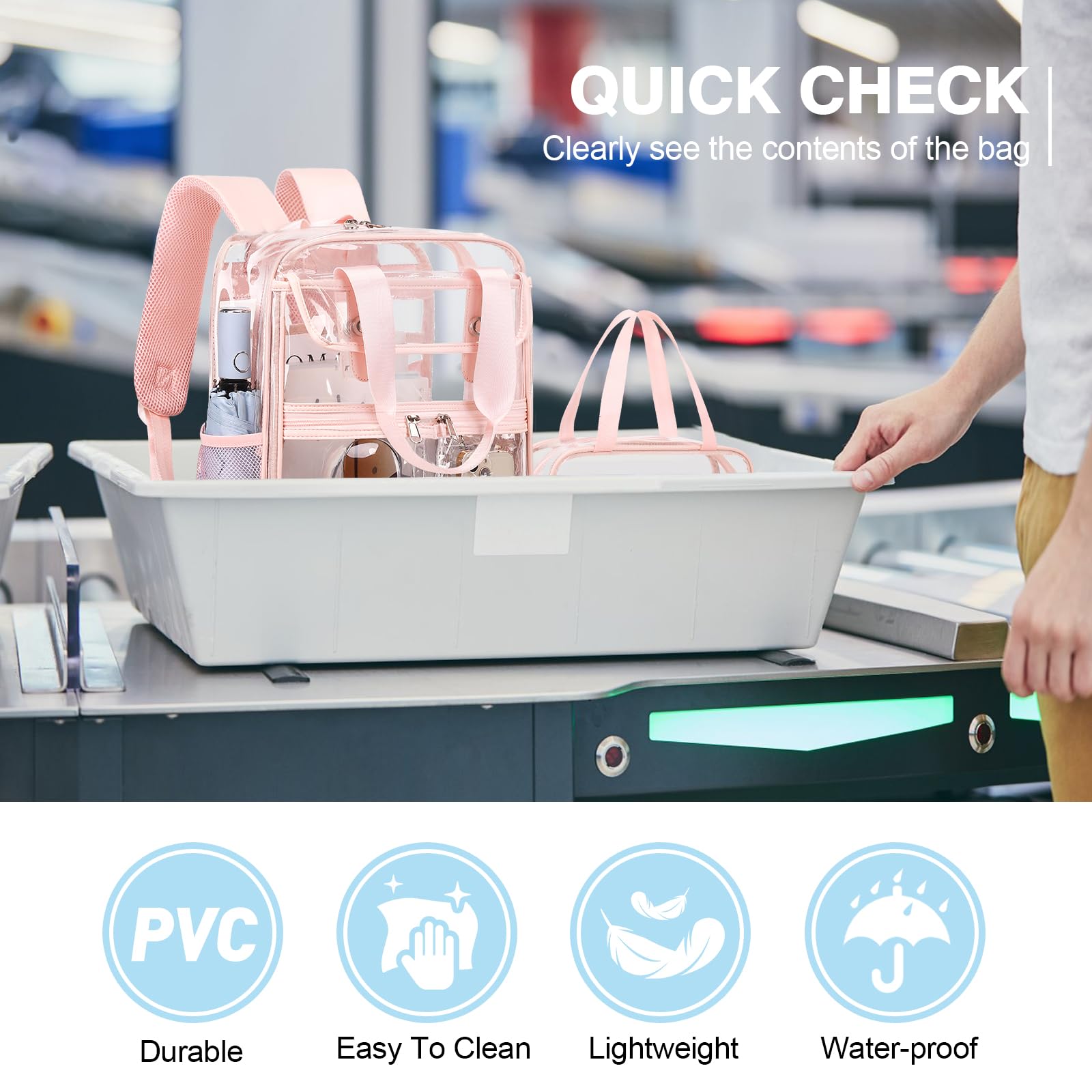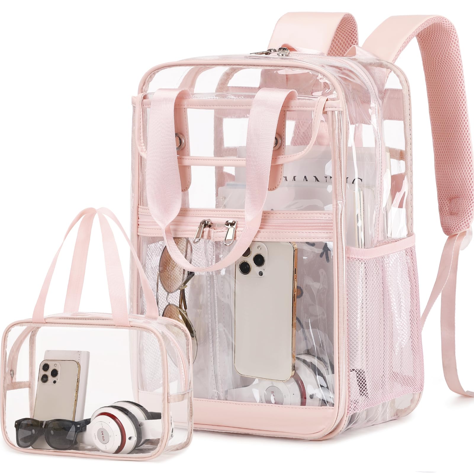 FIXITOK 2PCS Clear Backpack for Women Girls, Heavy Duty Clear Backpack with Clear Tote Bag for Stadium Events, See Through Backpack, Large Transparent Backpack Clear Bookbag for Concert Work Travel