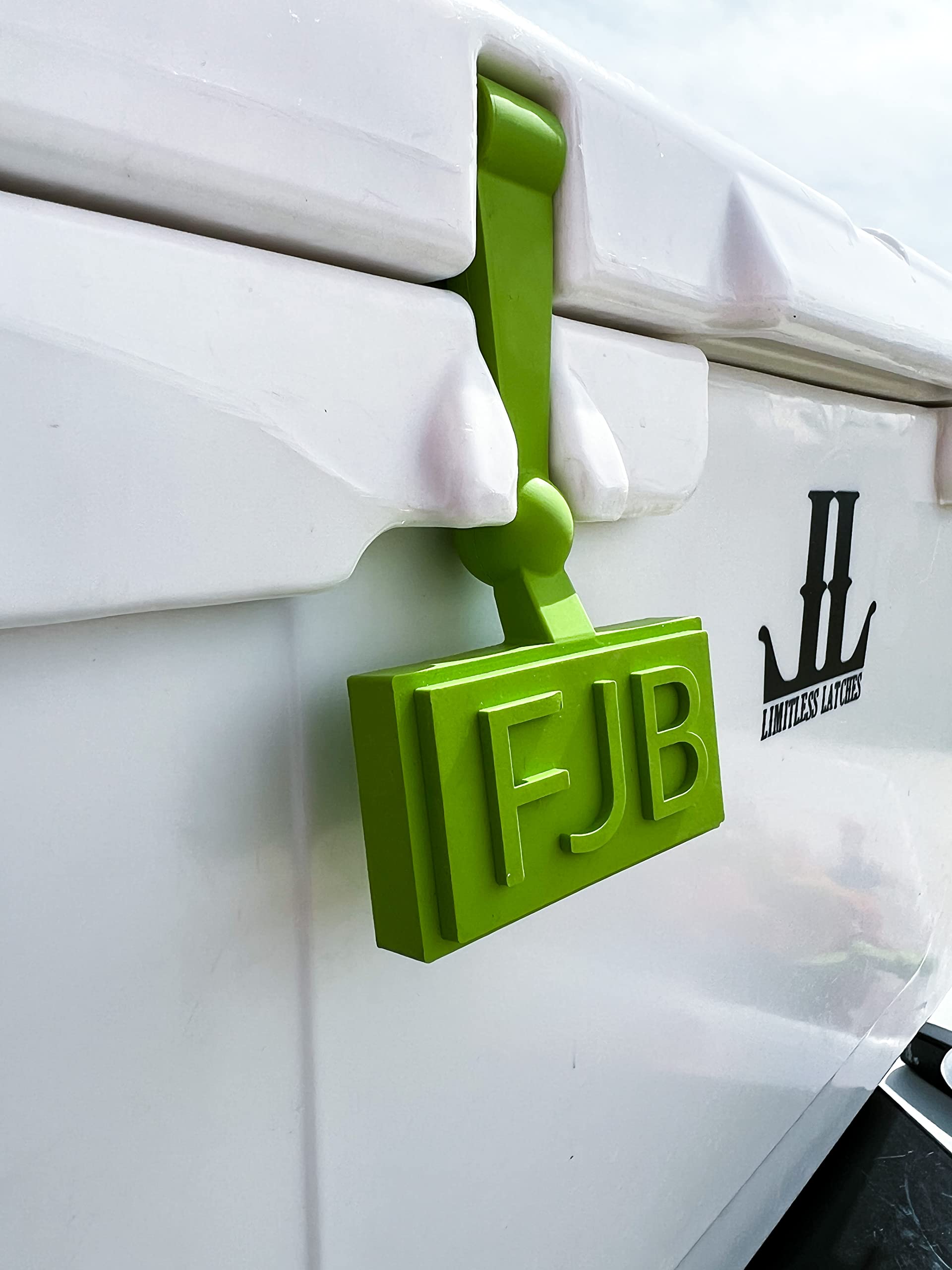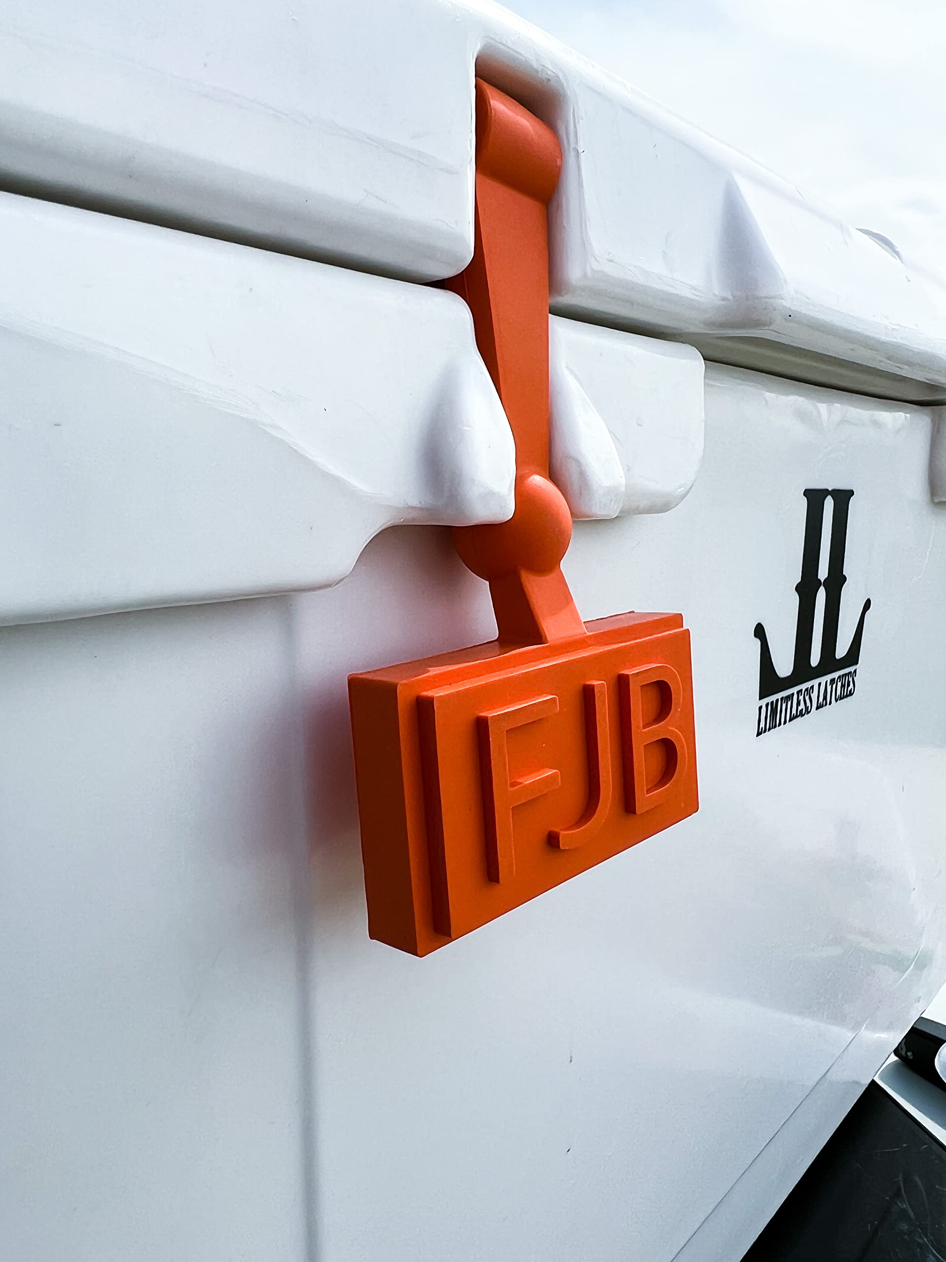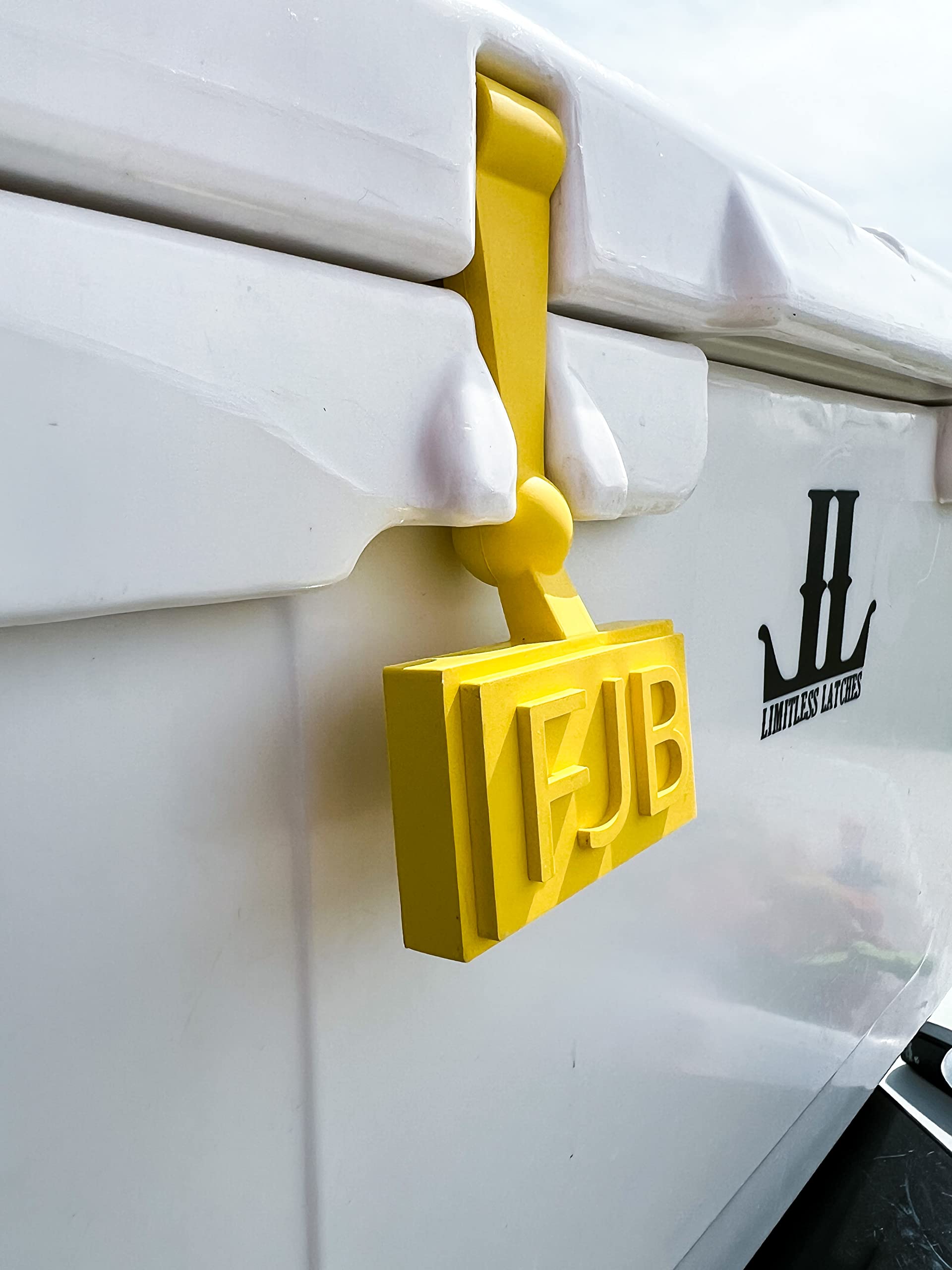 - Step 4: Take your new Limitless Latch & insert into groove & push pin back into place. ** Make sure pin slides through the cooler latch hole **