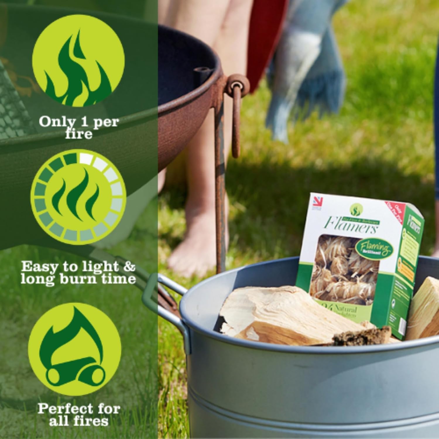 Our Flamers Fire Starter are suitable for wood burners, firepits, BBQs, pizza ovens, fireplaces, chimeneas, barbecues and open fires. You can also use it as a fire starter for kiln-dried kindling, hardwood logs in a wood burning stove, coal, charcoal and briquettes.