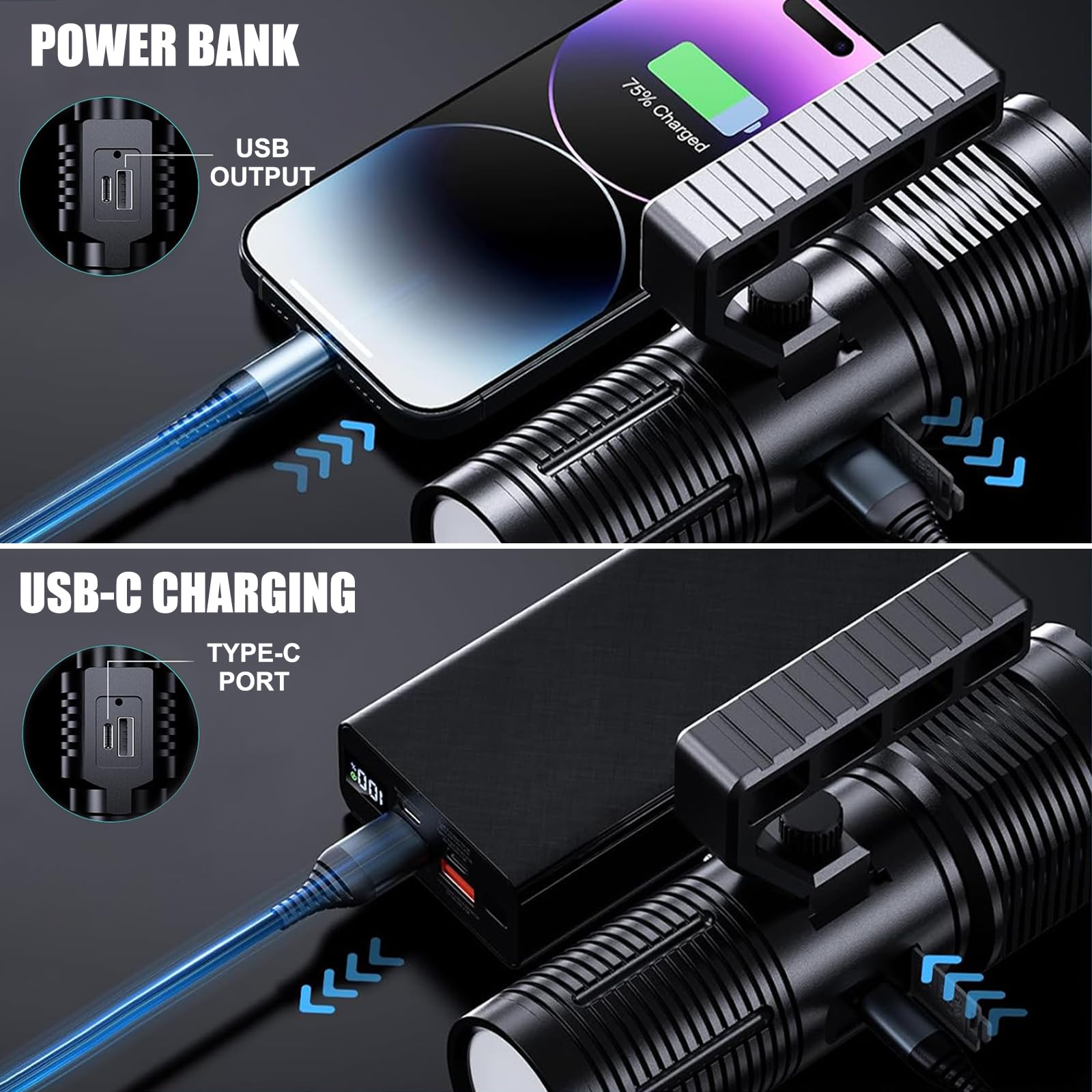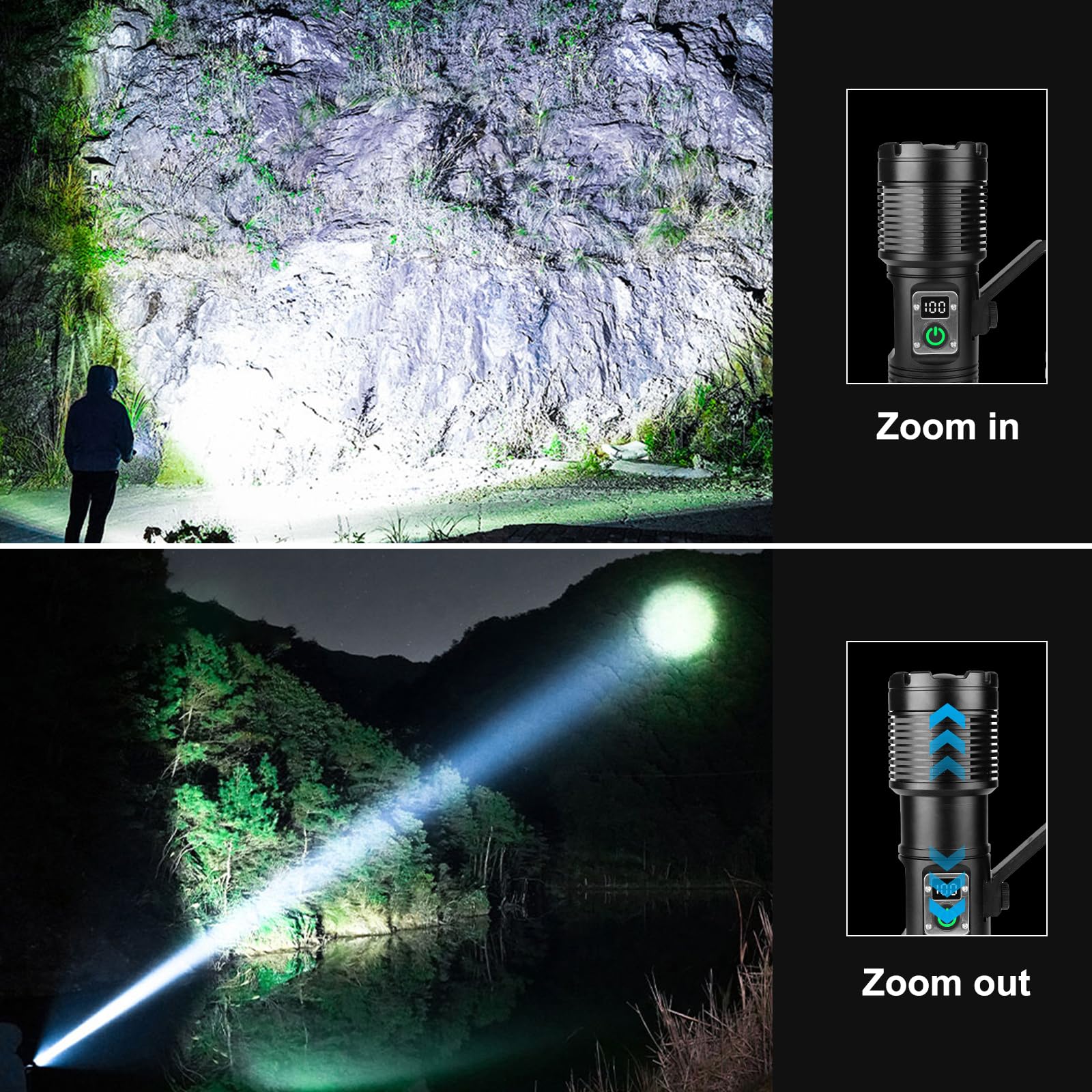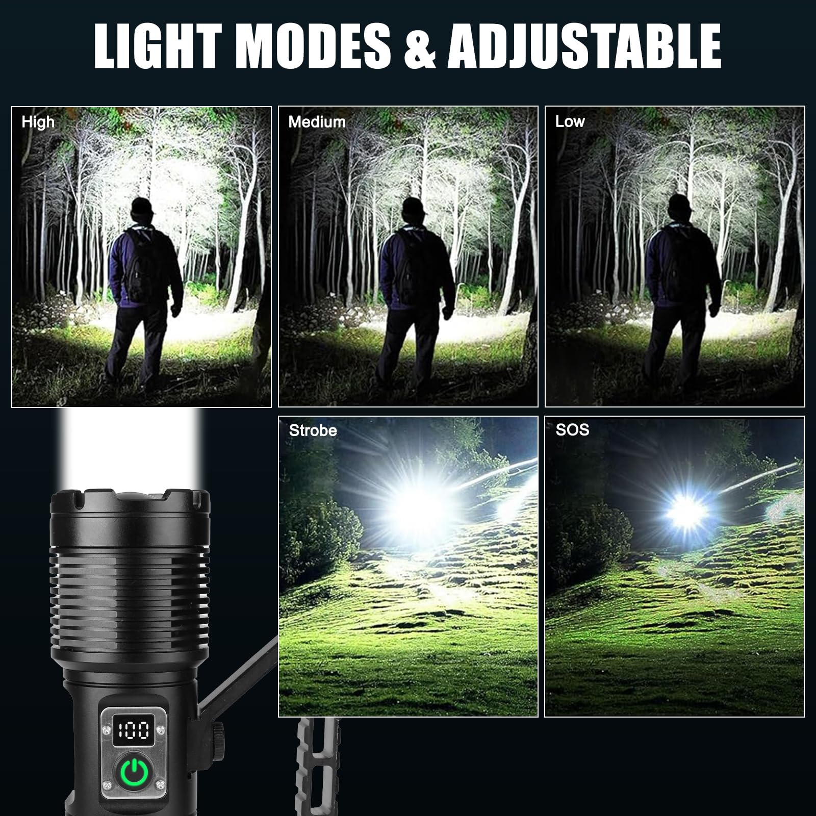 - DIGITAL POWER DISPLAY & USB OUTPUT - Our rechargeable flashlight comes with digital power display, which helps you accurately grasp the remaining power, so you'll never be left in the dark unexpectedly. The flashlights high lumens has a built-in USB output port that can charge mobile phones and other devices.
